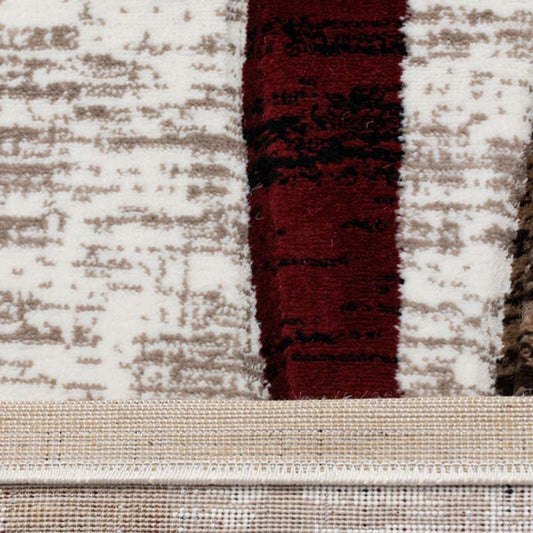 Covor cu insertii Geometrice tip Dreptunghiuri ,Bej/Grena