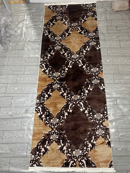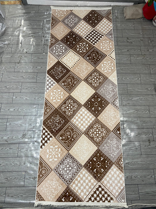 Covor Antiderapant cu Insertii Moderne Tip Romburi ,Bej/Maro