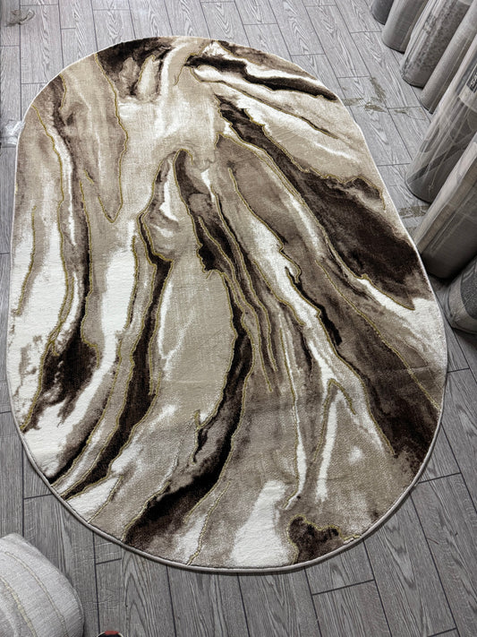 -55% ReducereCovor cu Insertii 3D tip Marmura,Bej/Crem/Auriu