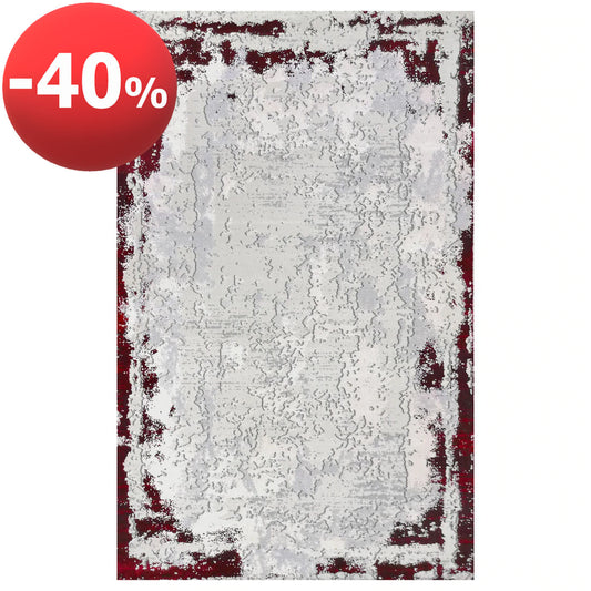 Covor Modern cu Insertii tip Picasso cu Chenar ,Grena/Gri