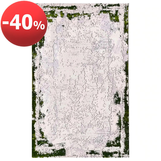 Covor Modern cu Insertii tip Picasso cu Chenar ,Verde/Gri