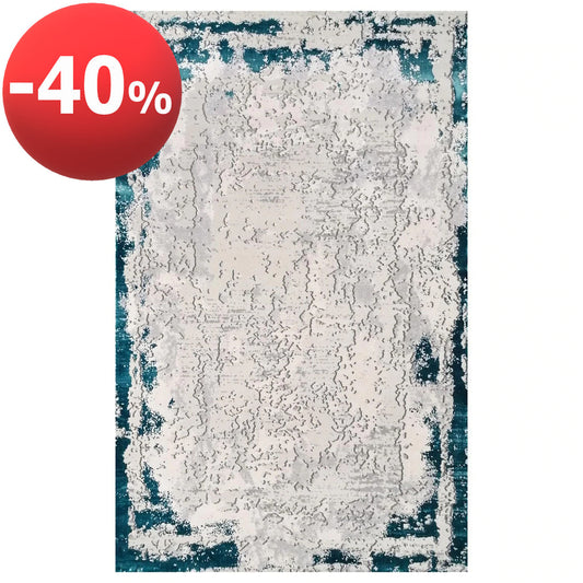 Covor Modern cu Insertii tip Picasso cu Chenar ,Turcoaz/Gri