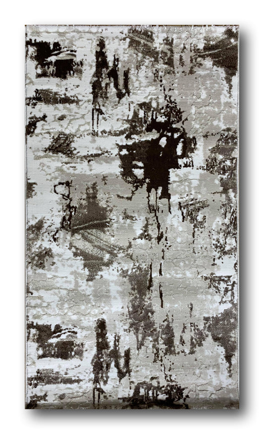 Covor Modern cu Insertii tip Picasso cu Chenar ,Negru/Gri