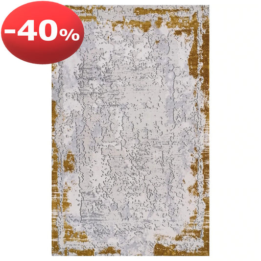 Covor Modern cu Insertii tip Picasso cu Chenar ,Auriu/Gri