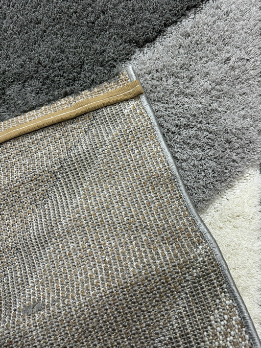 -32% ReducereSet Covor si Traverse Pufoase Tip Shaggy,Gri/Negru/Alb