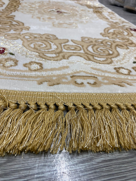 Set Covor Si Traverse cu Medalion si Franjuri ,Bej/Auriu
