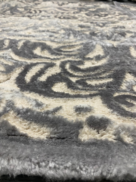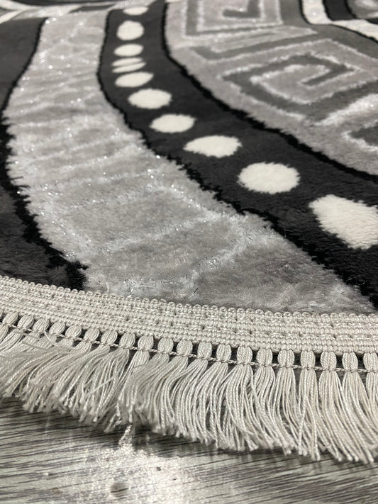 Set Covor si Traverse Pufoase de Matase 3D,Gri/Negru/Alb
