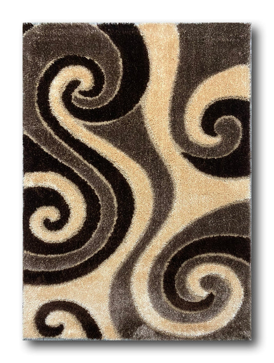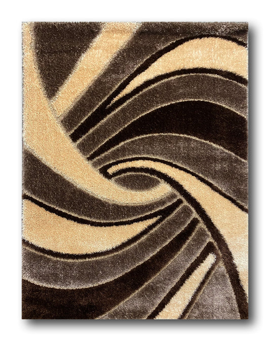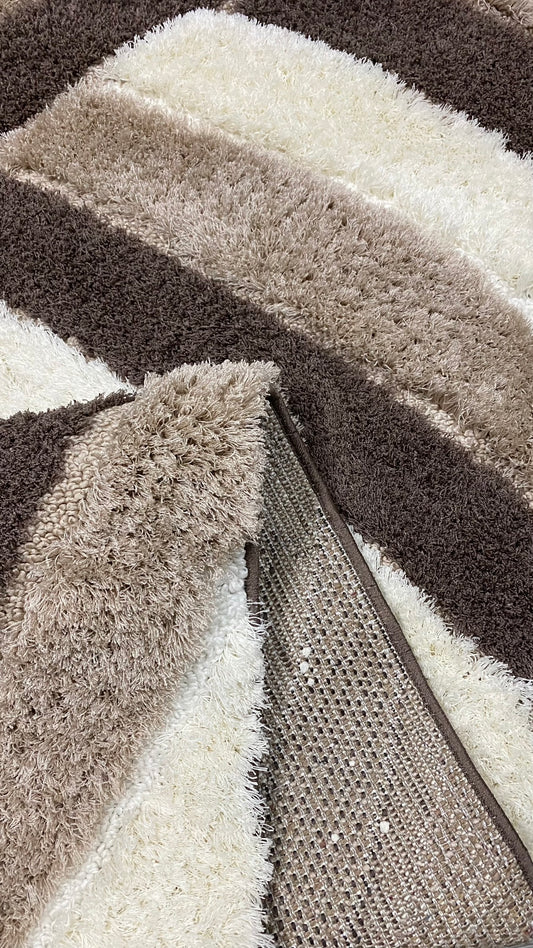 Covor Pufos cu Fir de Matase si Bumbac3D ,Maro/Crem/Capucino