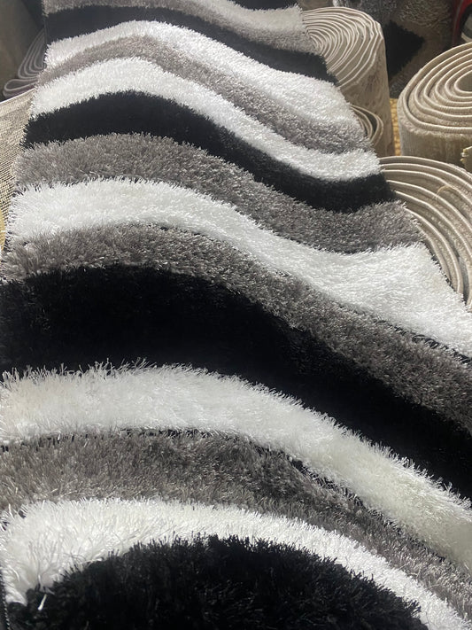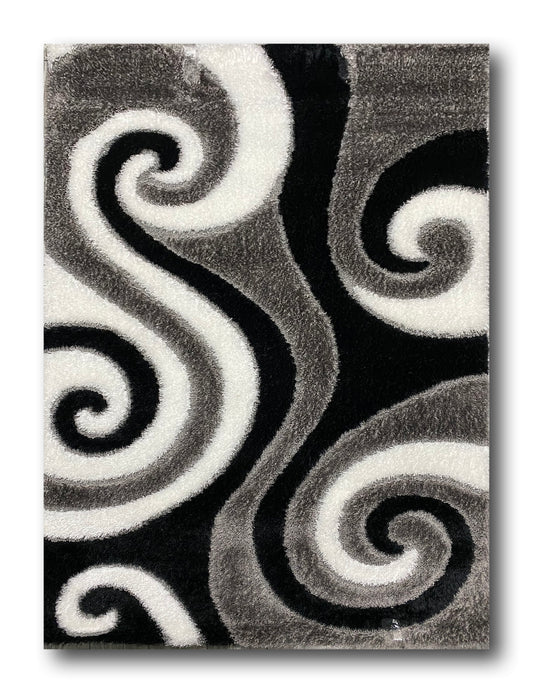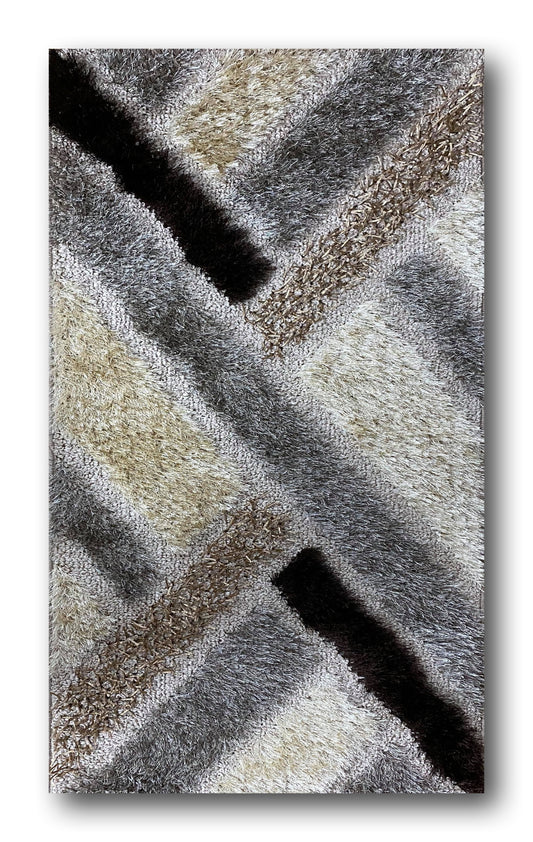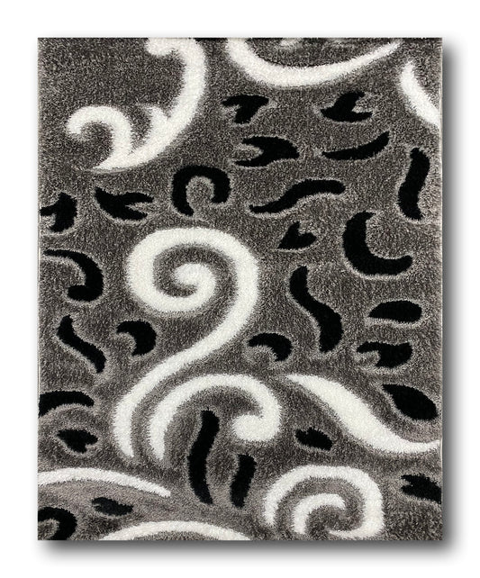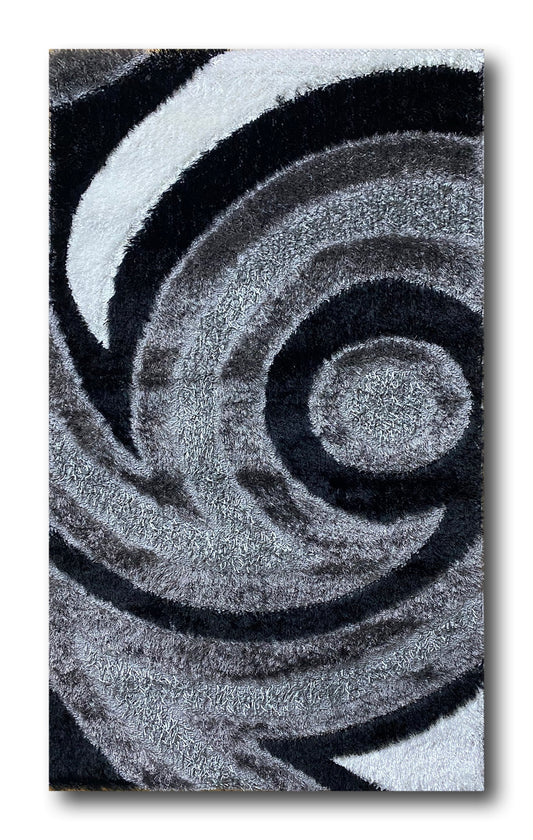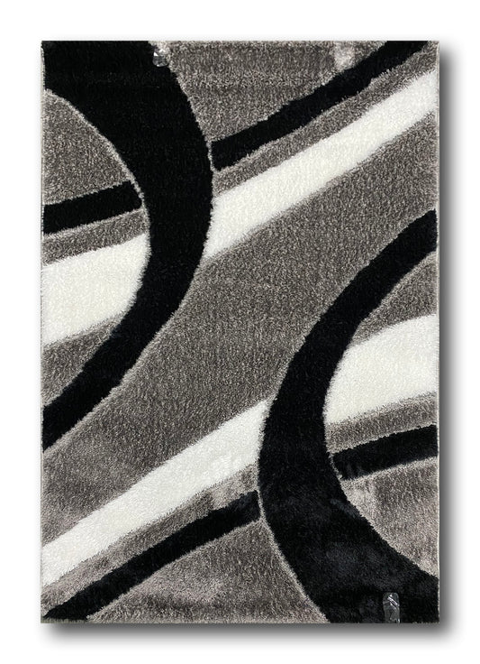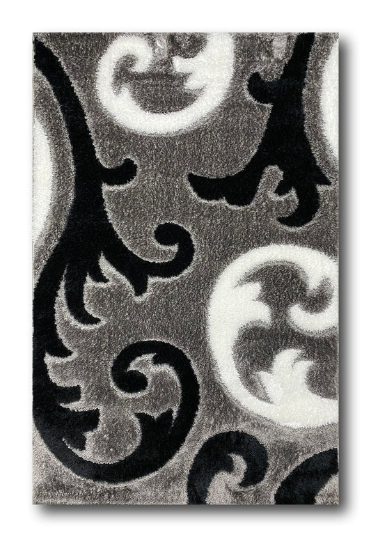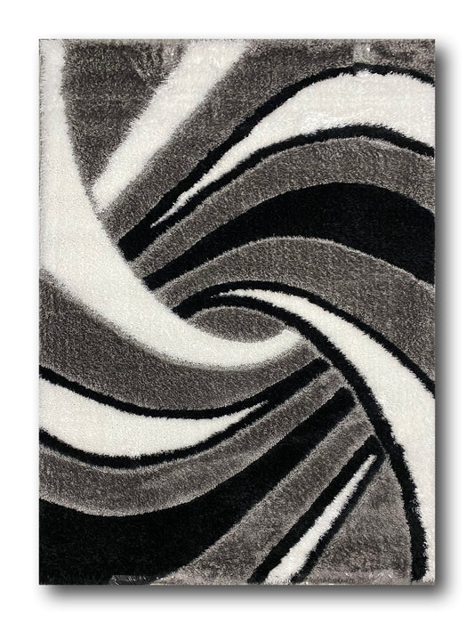 Covor Pufos cu Fir de Matase si Bumbac 3D;Gri/Negru/Alb