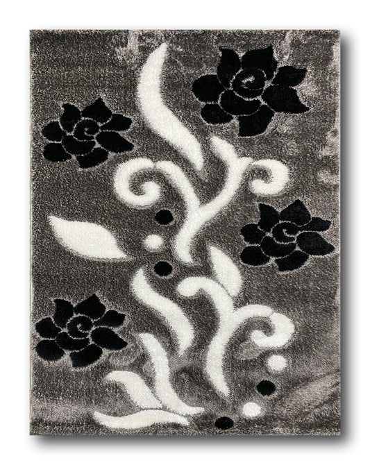 Covor Pufos cu Fir de Matase si Bumbac 3D tip Trandafiri,Gri/Alb/Negru