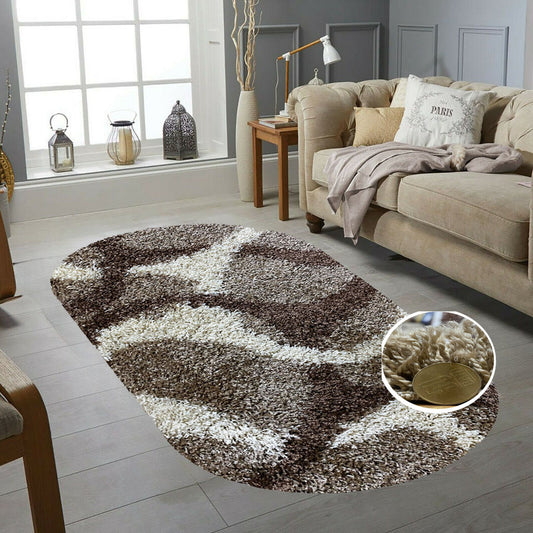 Covor Pufos cu Fir de Matase Si Bumbac 3D Tip Valuri,Bej/Maro