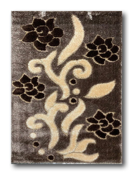 Covor Pufos cu Fir de Matase si Bumbac 3D ,Bej/Maro/Capucino