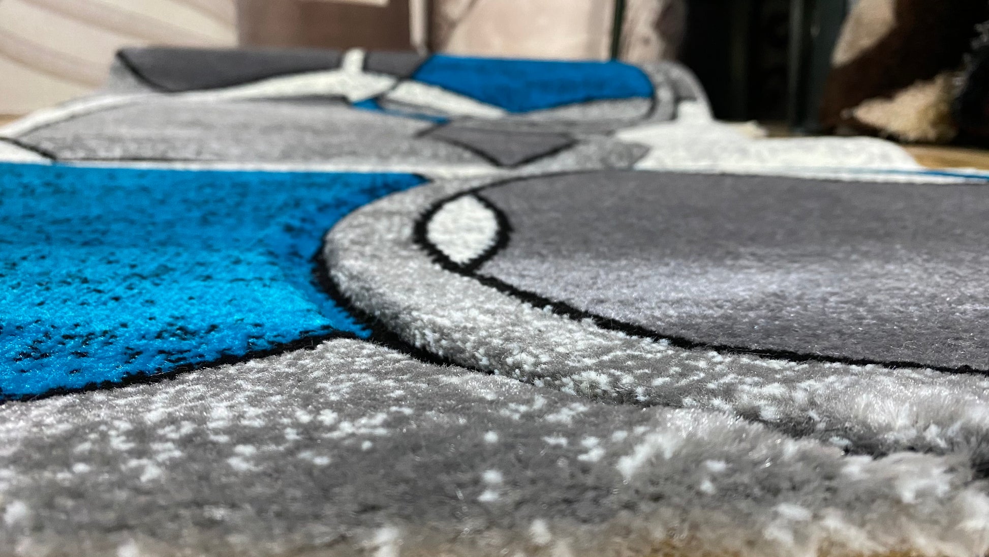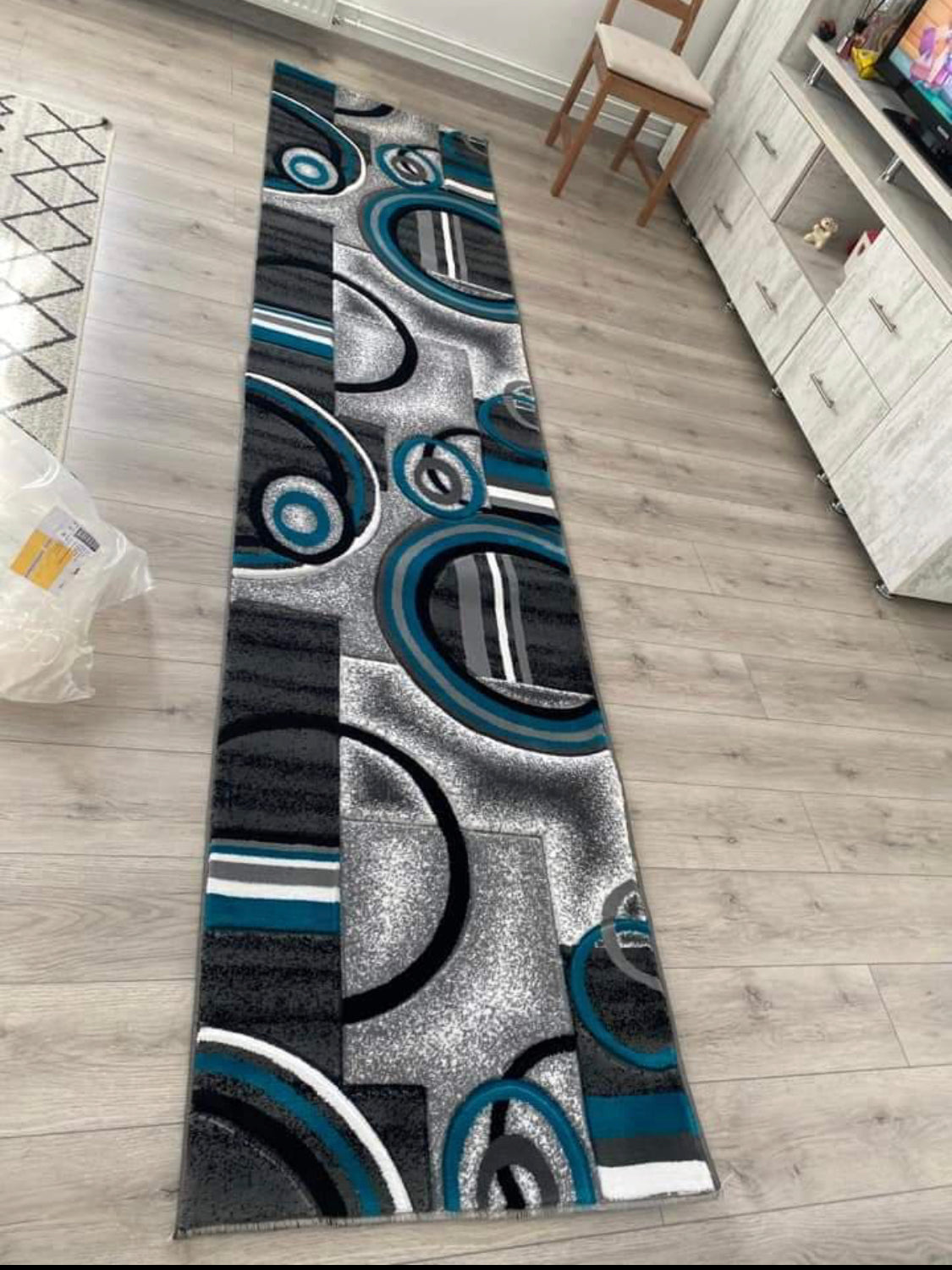 Traversa cu Insertii Geometrice tip Cercuri, Gri/Turqoise/Negru