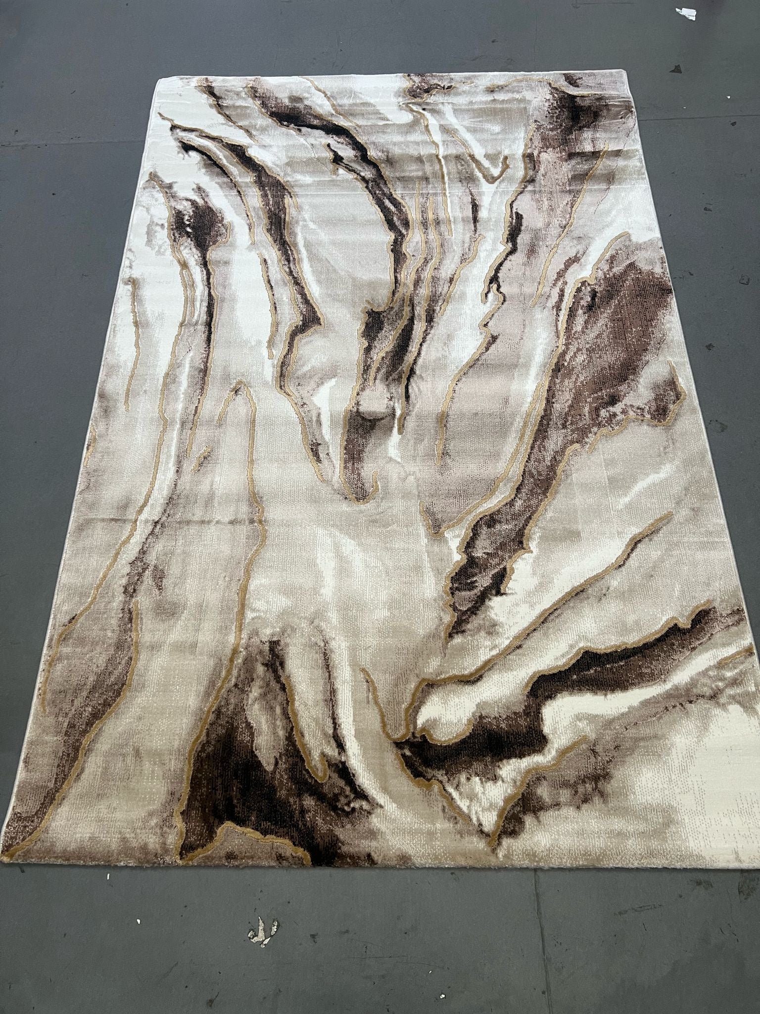 Covor cu Insertii 3D tip Marmura,Bej/Crem/Auriu