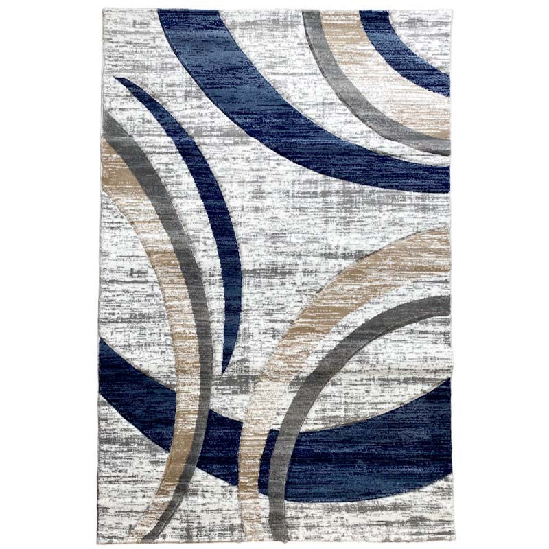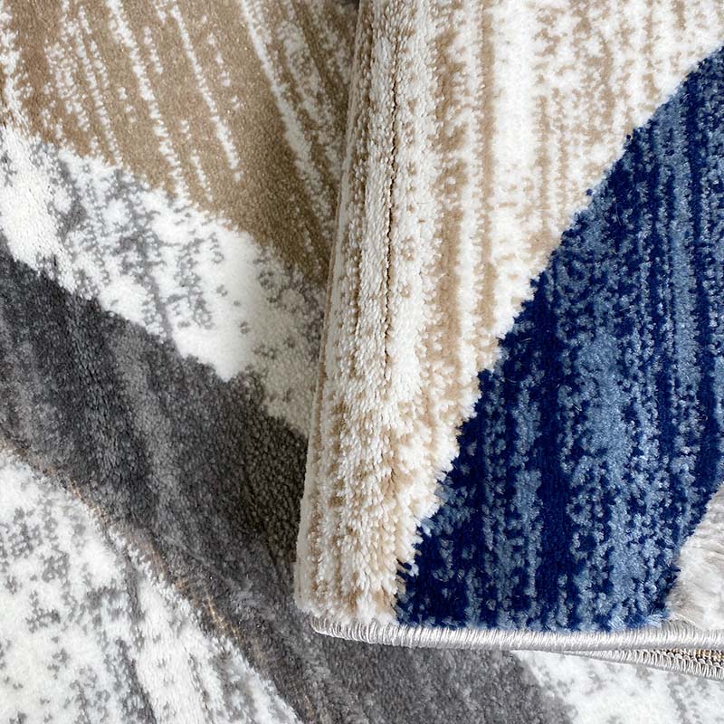 Covor cu Insertii 3D Linii,Gri/Albastru/Bej