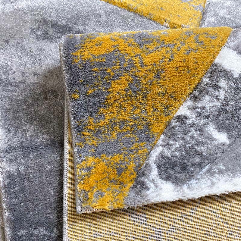 Covor cu Insertii 3D Linii,Gri/Galben