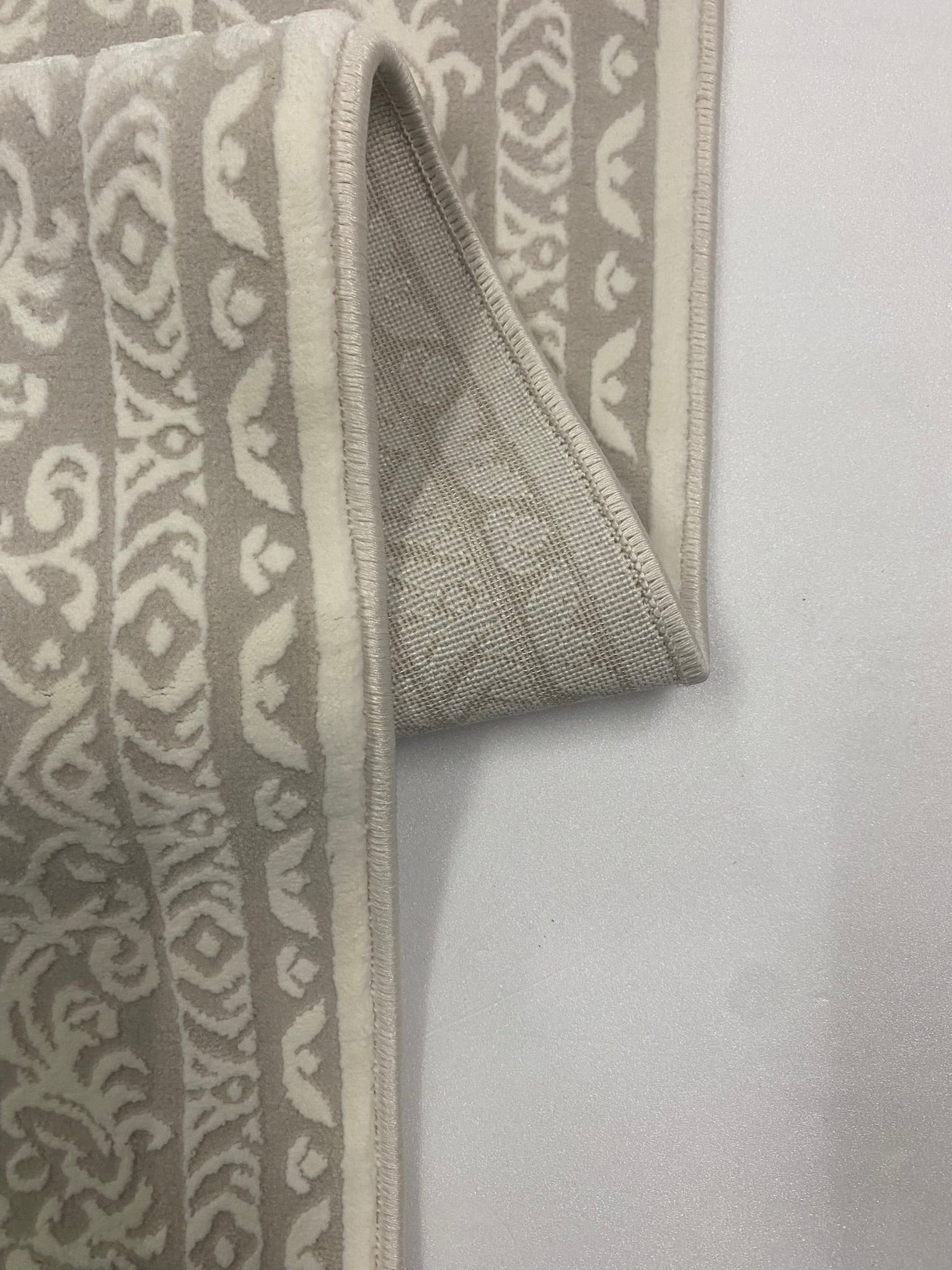 Covor cu Insertii Clasice Modern,Alb/Bej