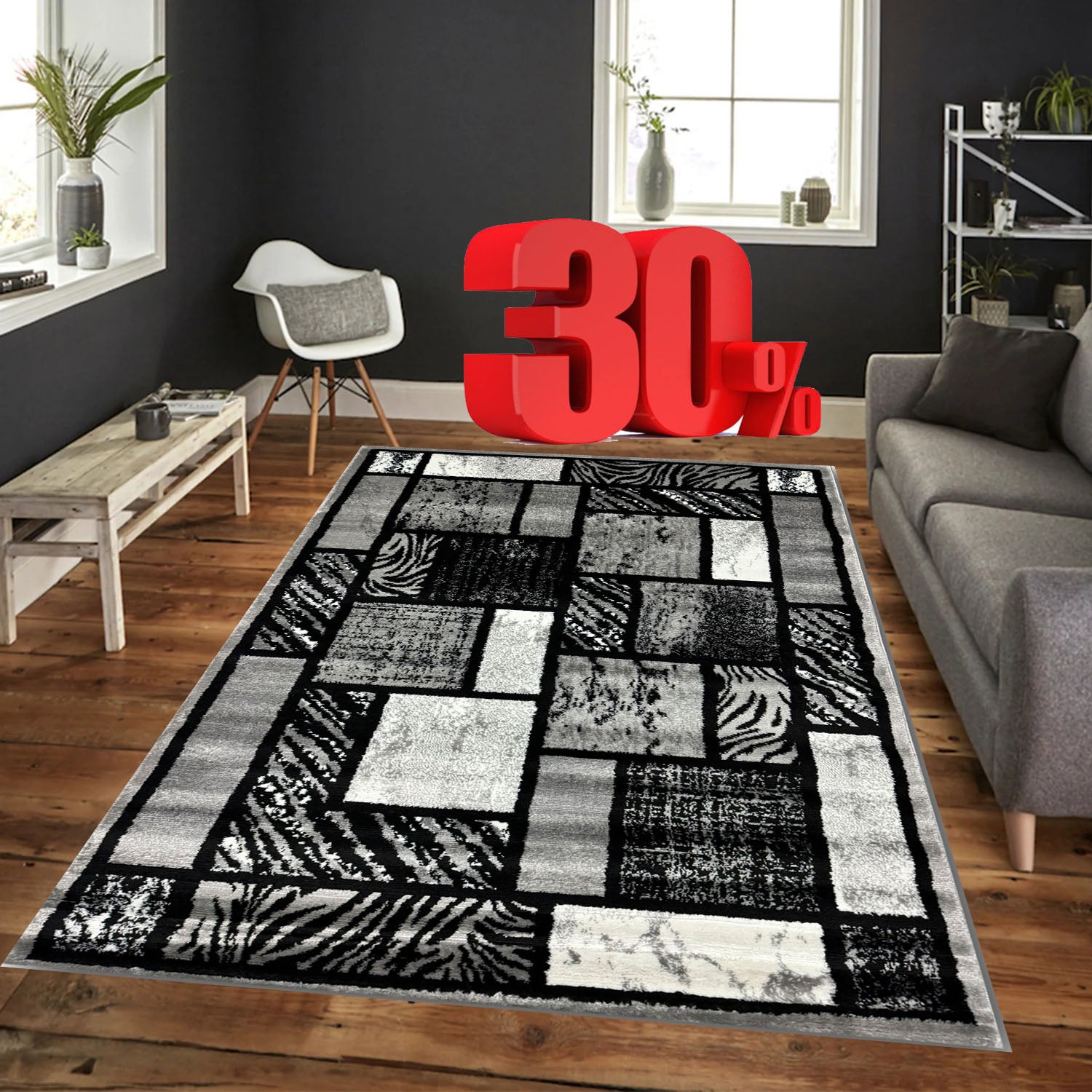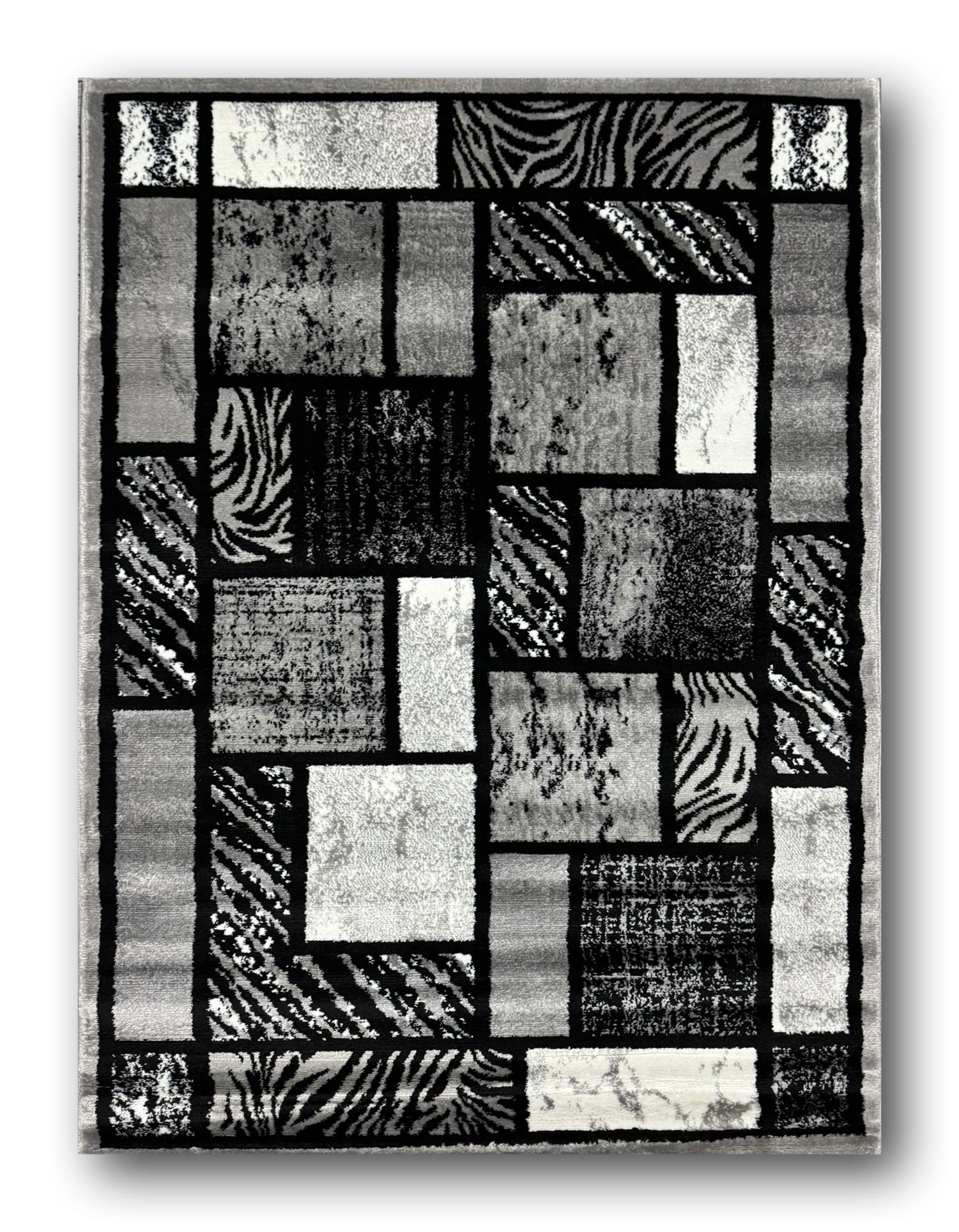 Covor cu Insertii Geometrice Tetris,Gri/Negru/Bej