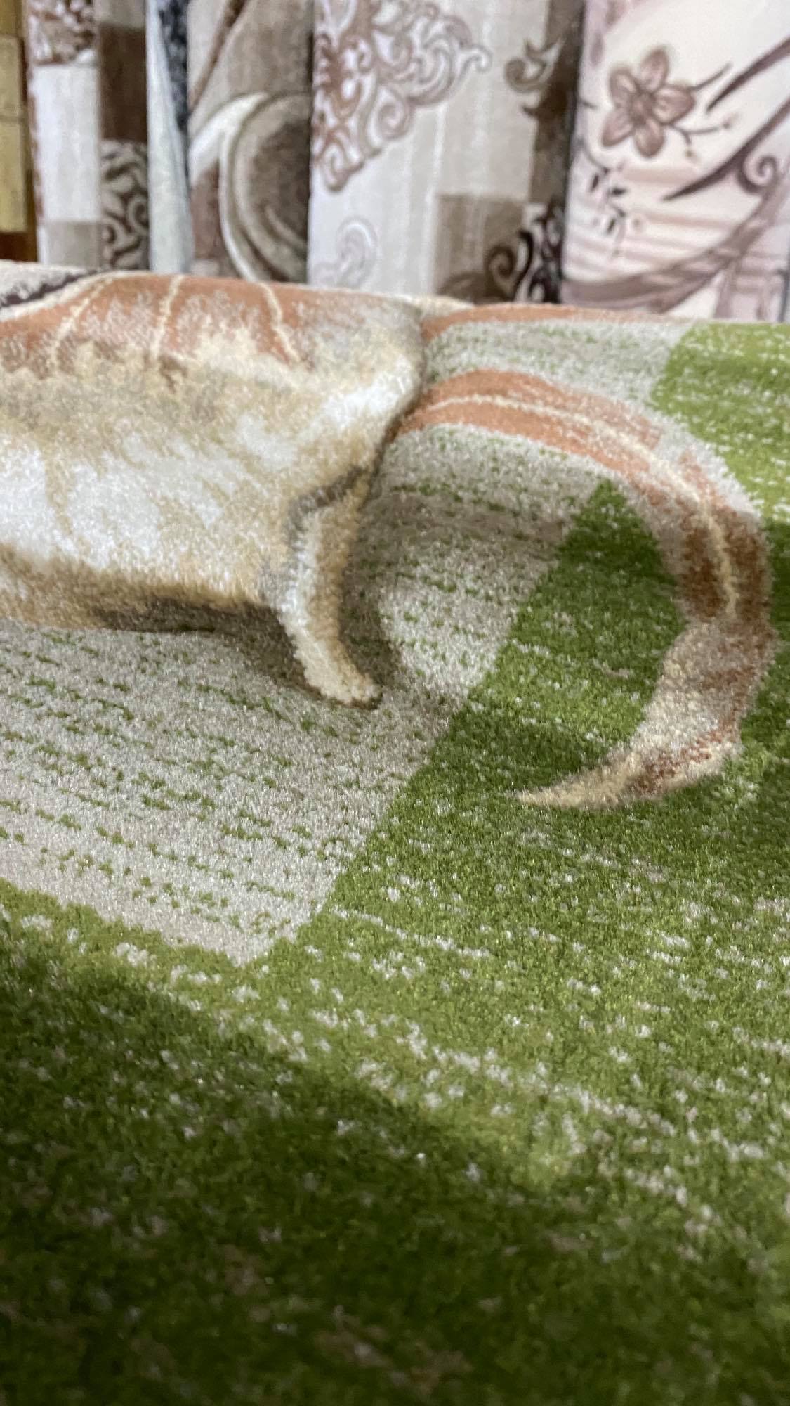 Covor cu Insertii Florale de tip Crin Asiatic,Verde/Crem