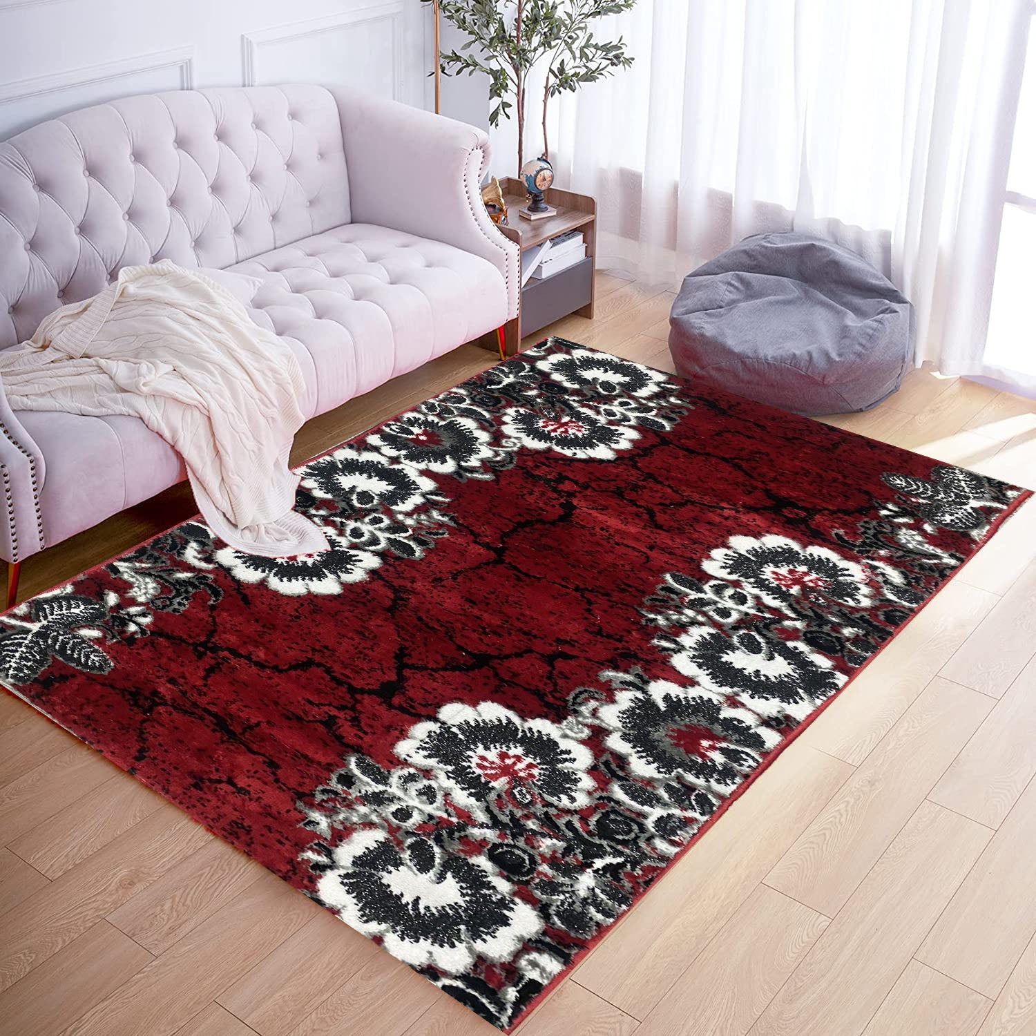 Covor cu Insertii Florale,Grena