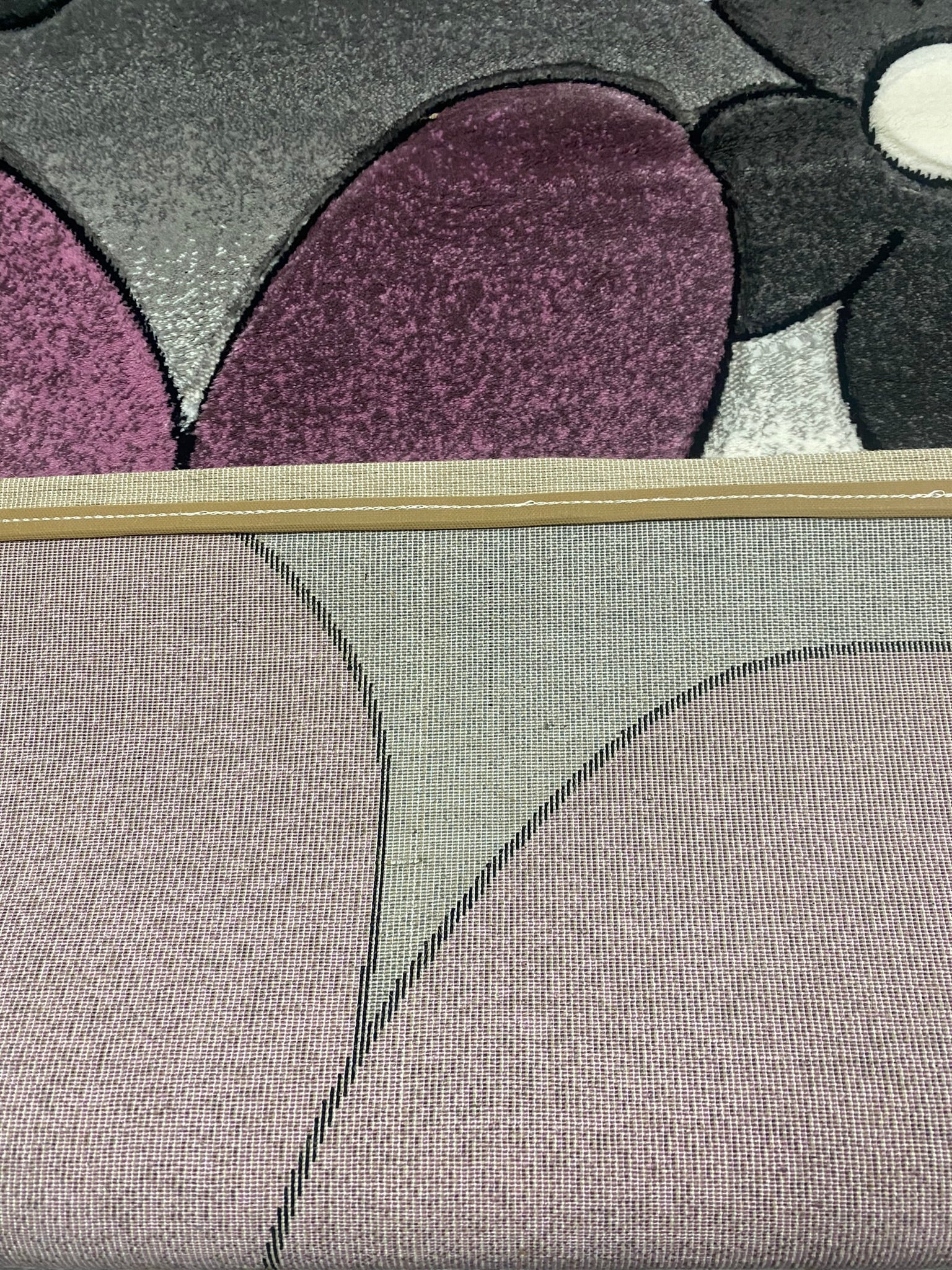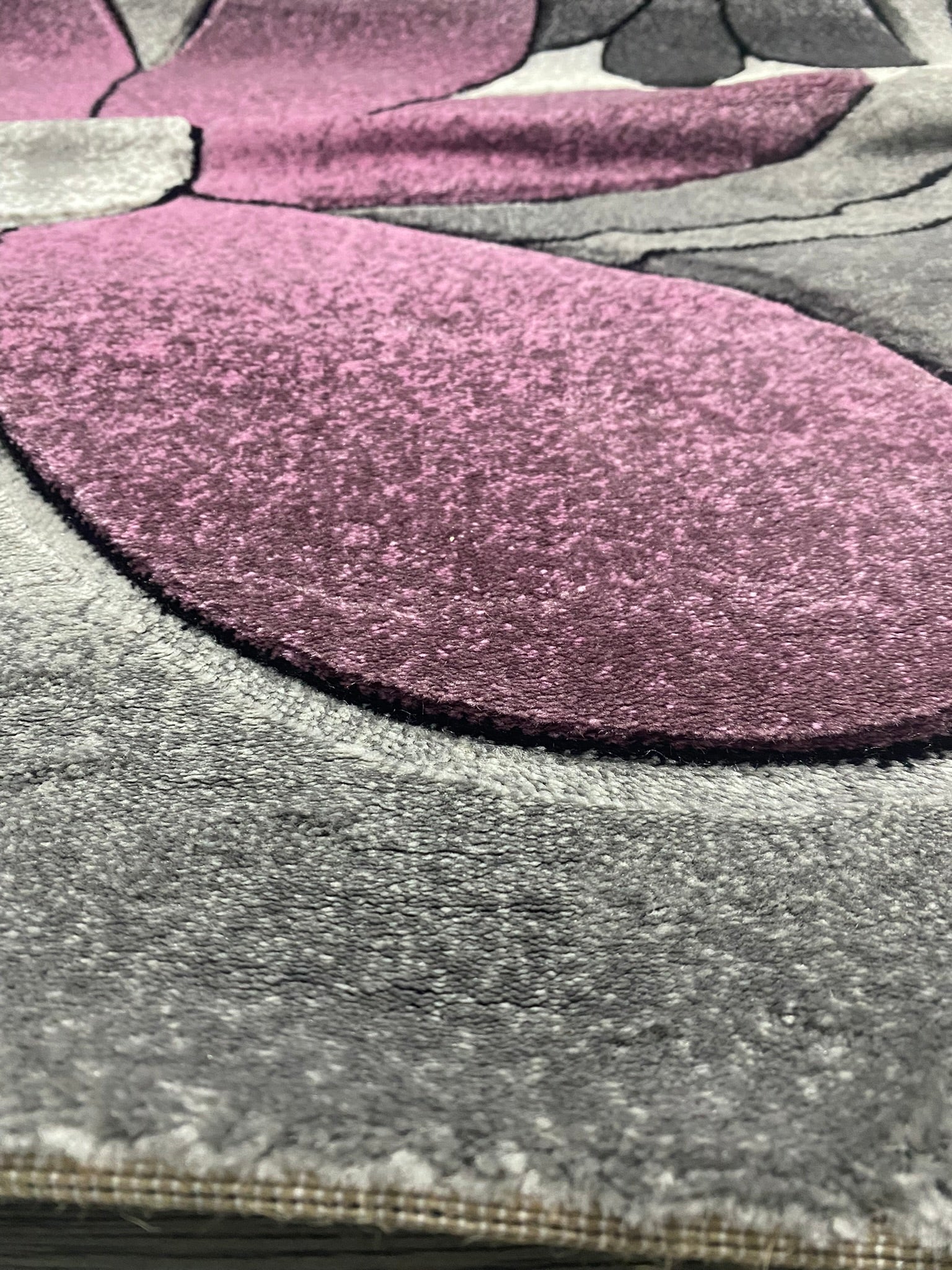 Covor cu Insertii Florale tip Margarete,Mov/Gri
