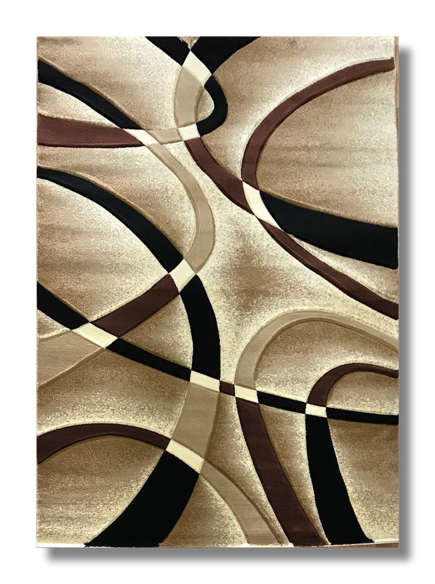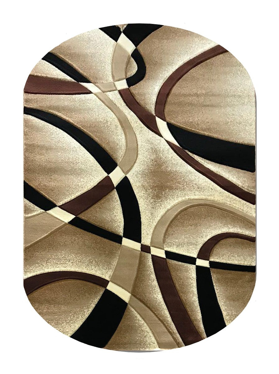 Covor cu Insertii Geometrice de Tip Linii si Semicercuri,Bej