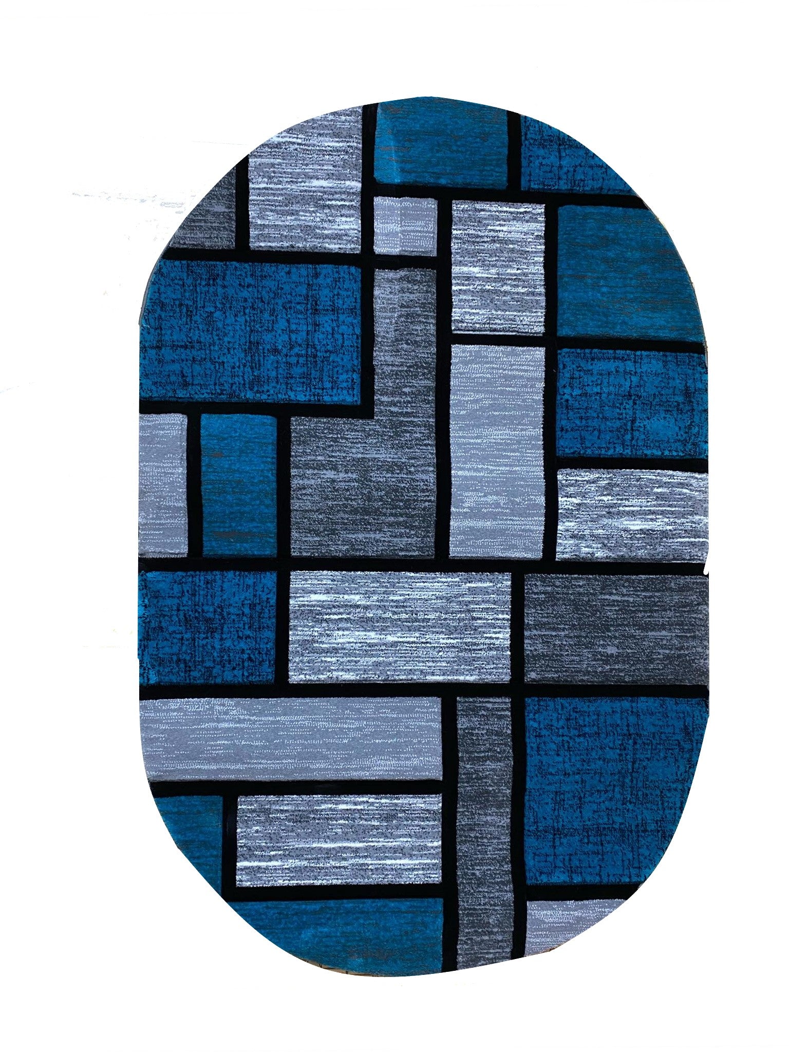 Covor cu Insertii Geometrice de Tip Patratele si Dreptunghiuri,Turqoise