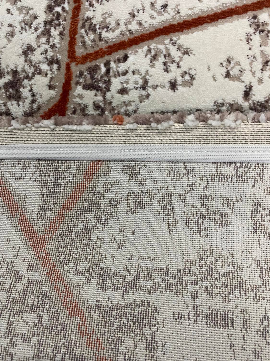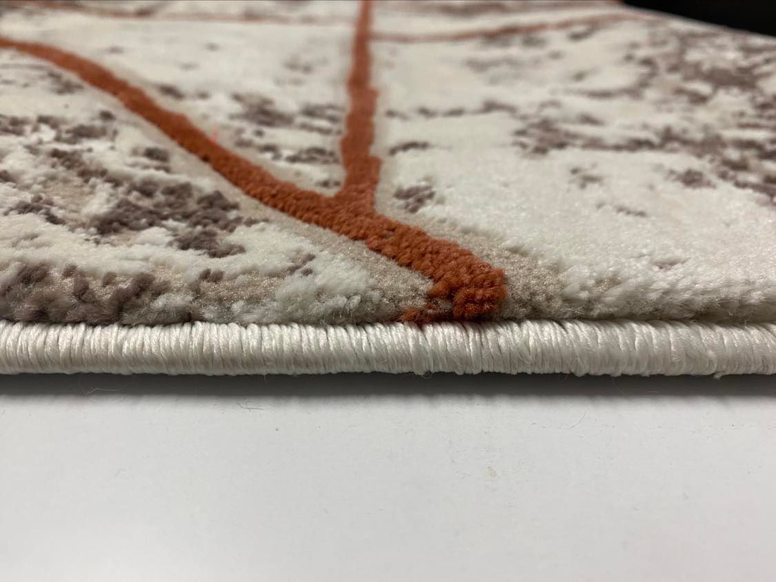 Covor Modern cu Insertii Geometrice de tip Triunghiuri,Portocaliu/Gri/Crem