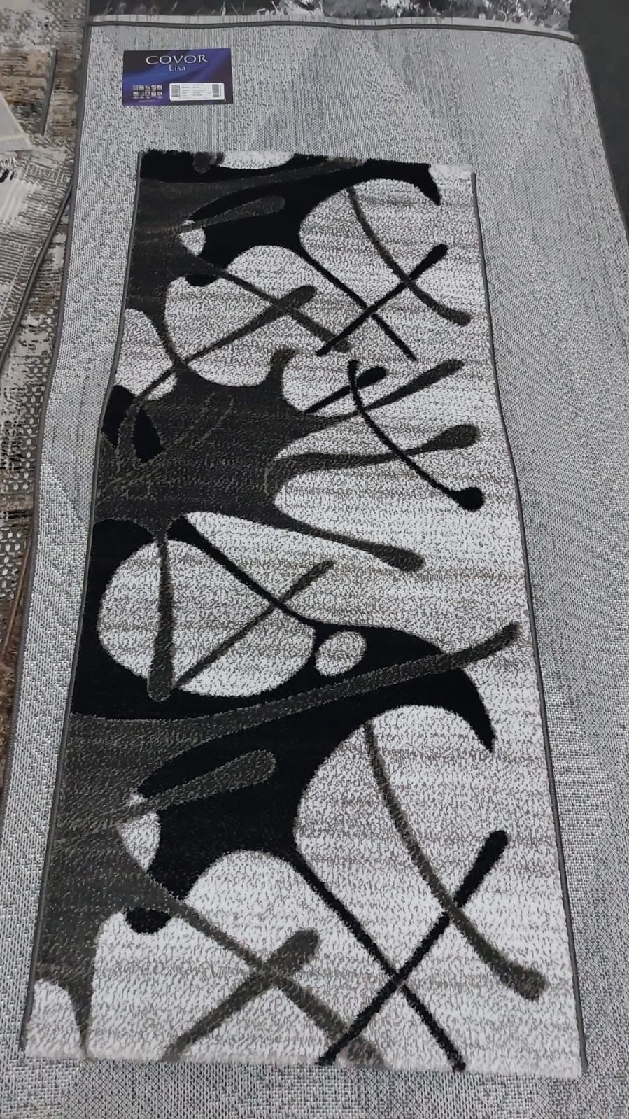 Covor cu insertii Tip Acolada,Gri/Negru