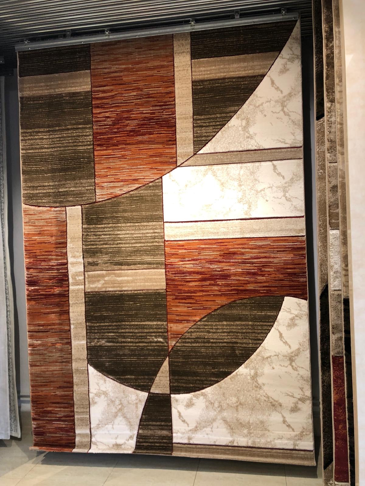 Covor cu insertii Geometrice tip Cercuri și Dreptunghiuri ,Bej/Grena