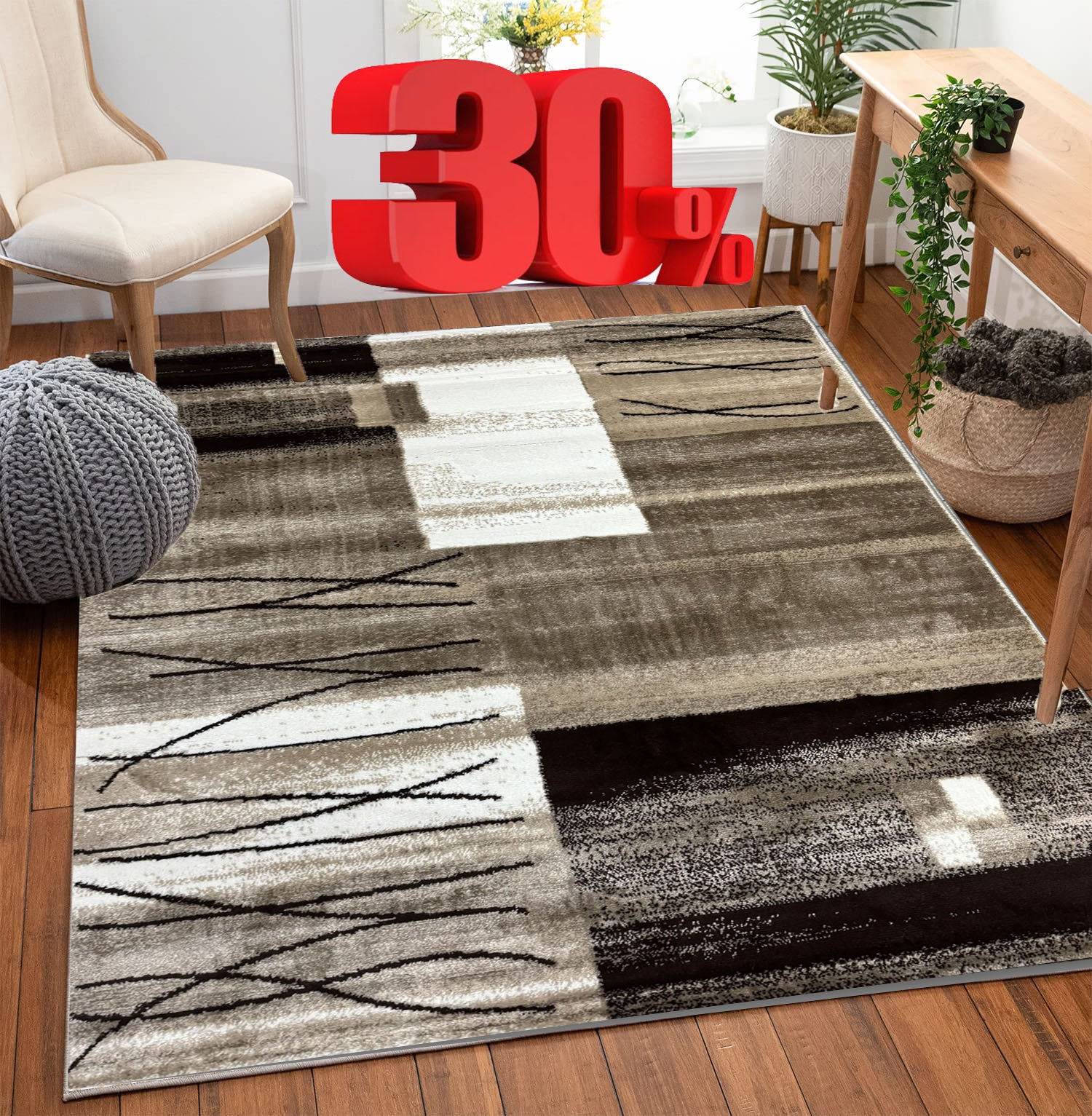Covor cu Insertii Geometrice Tip Lini ,Bej/Crem