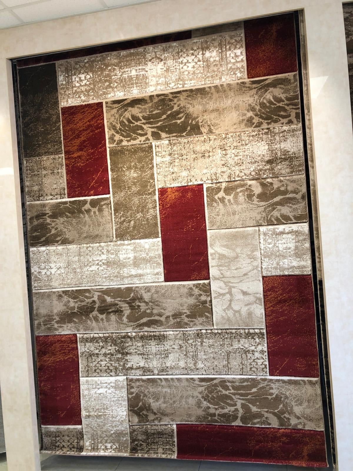 Covor cu insertii Geometrice tip Dreptunghiuri ,Bej/Grena