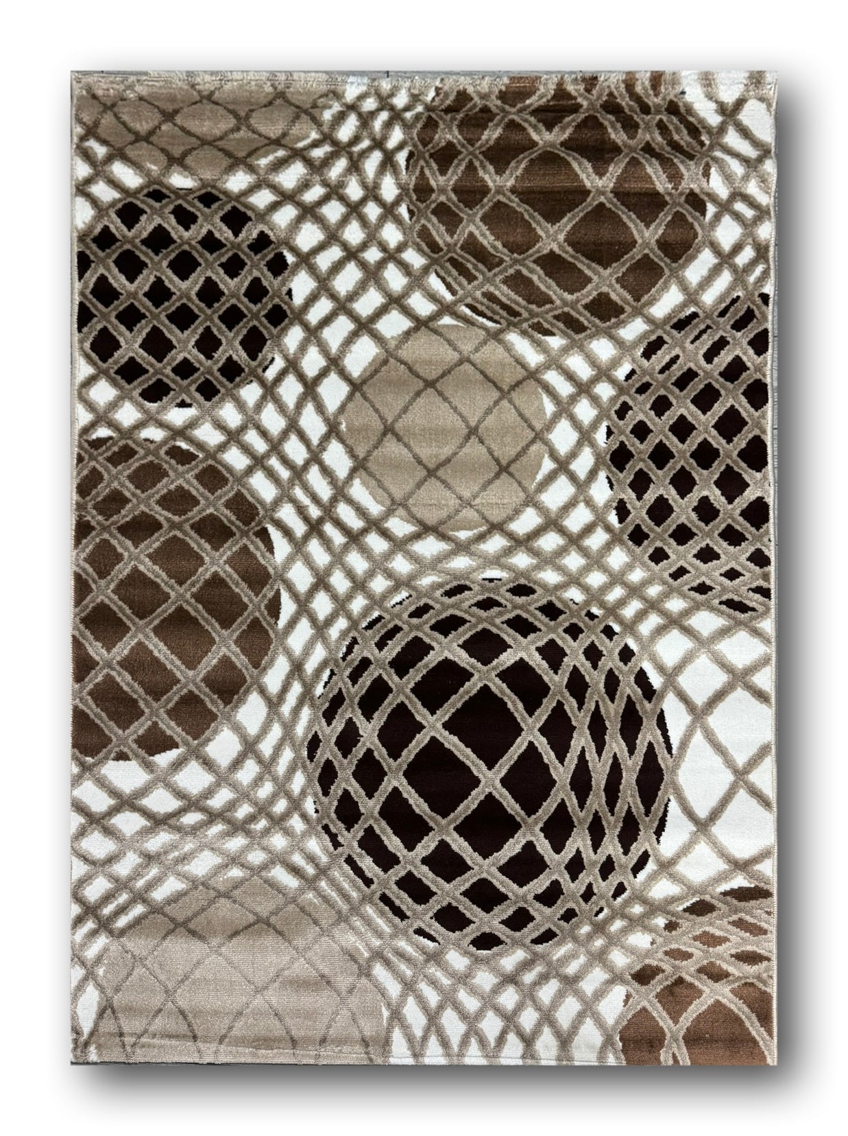 Covor cu Insertii Geometrice Tip Cercuri 3D , Bej/Crem/Maro