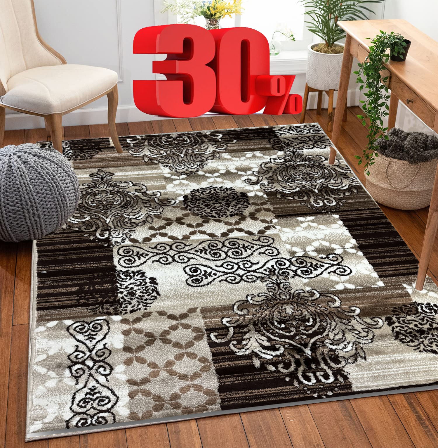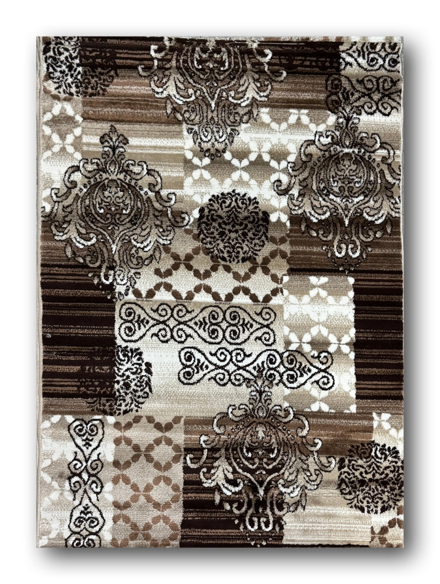 Covor cu Insertii Tip Baroc,Bej/Maro