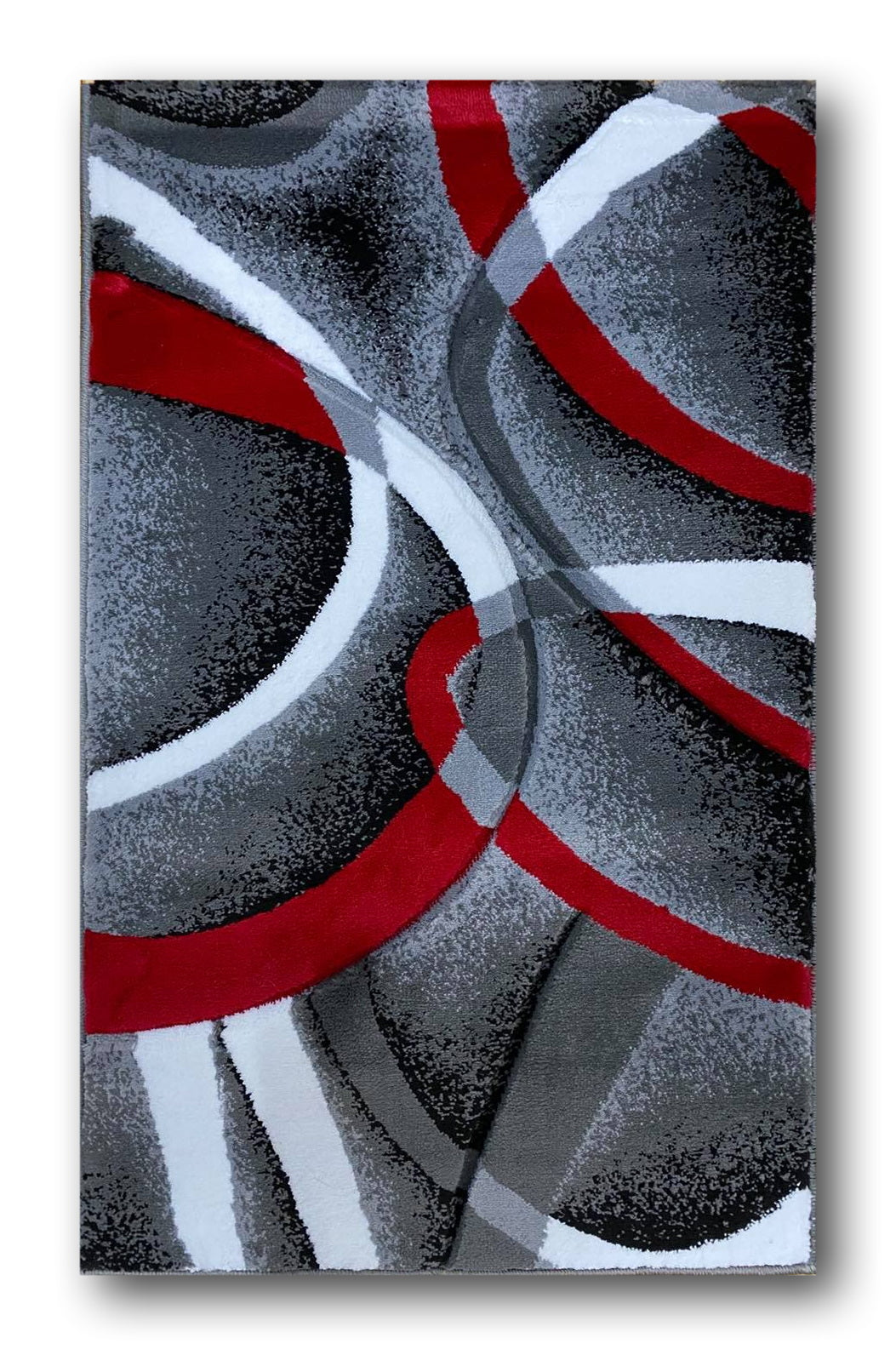 Covor cu Insertii Geometrice tip Linii ,Rosu/Gri