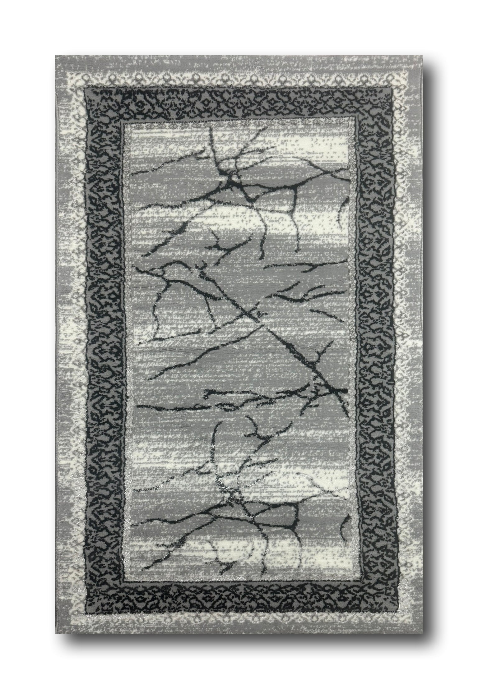 Covor cu Insertii Grecesci in Chenar,Negru/Gri/Crem