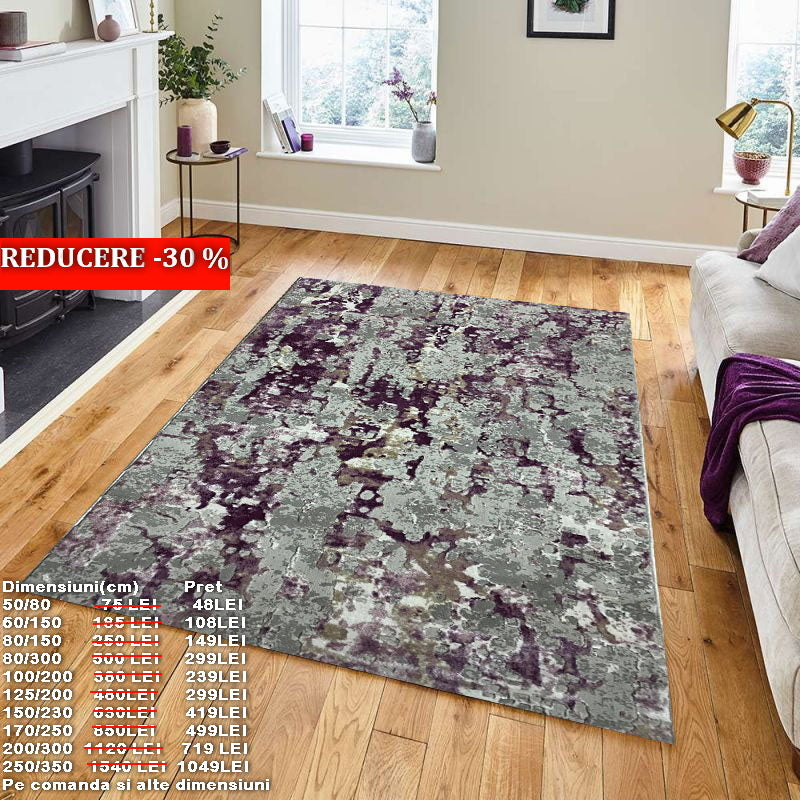 Covor cu Insertii Moderne tip Picasso,Mov-Gri