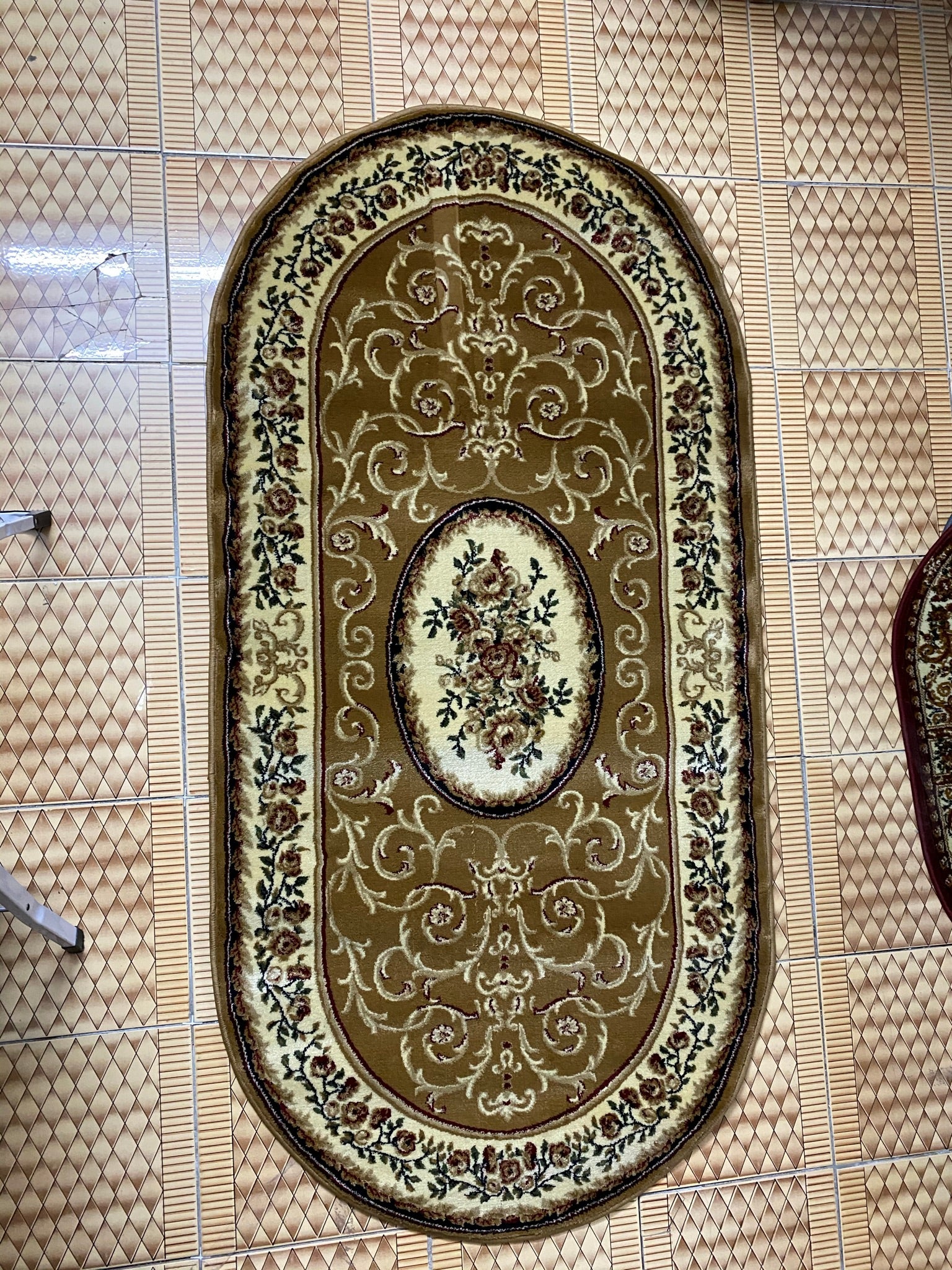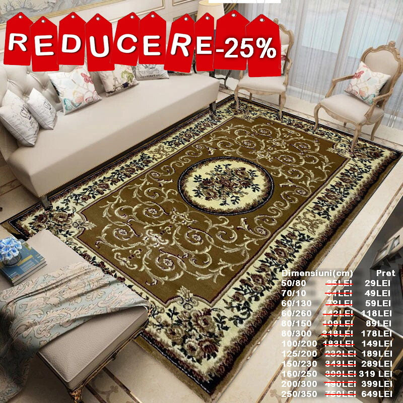 Covor cu Medalion si Insertii Florale ,Bej