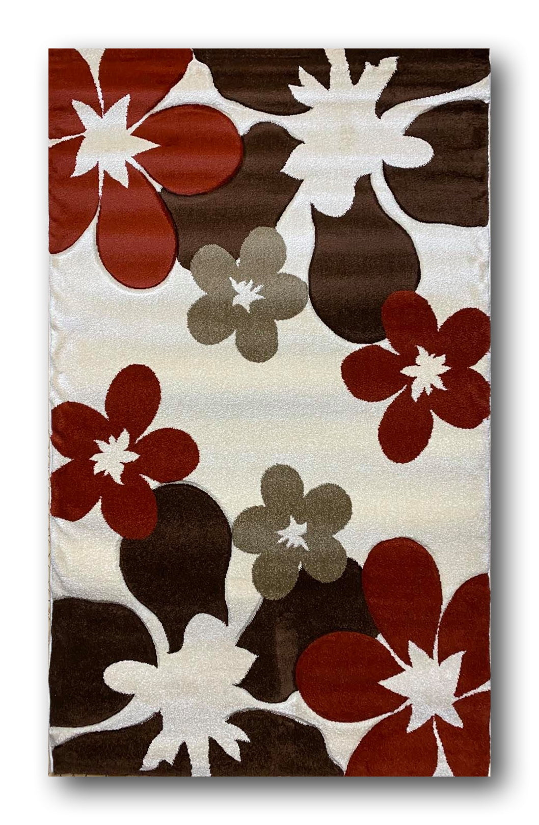 Covor Firuse cu Insertii Florale tip Margareta,Caramiziu-Bej