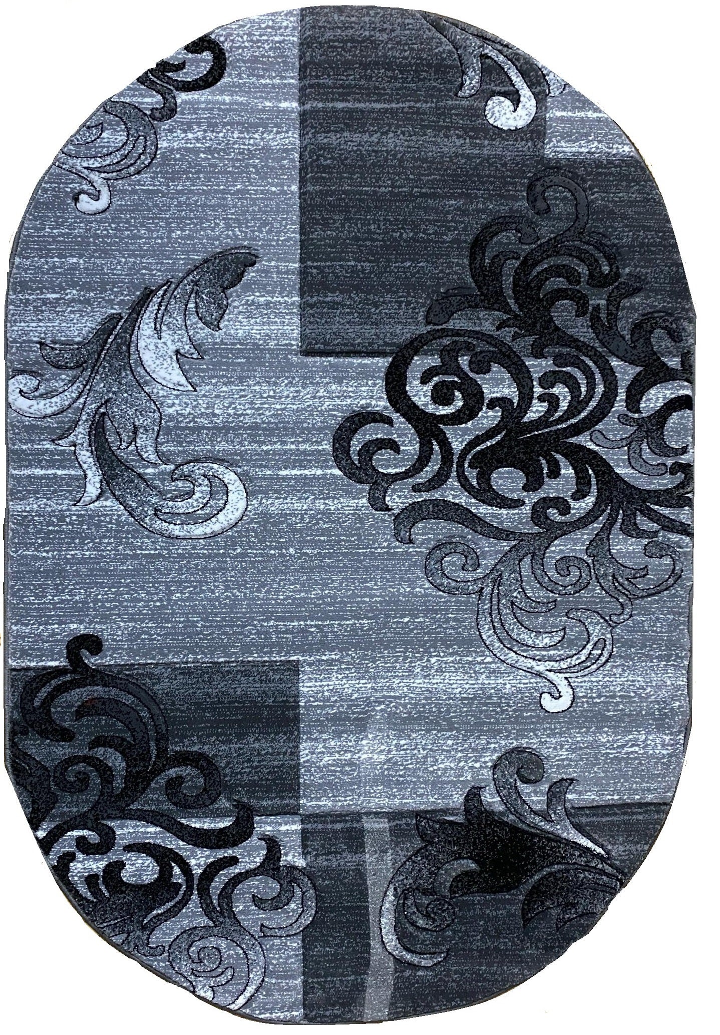 Covor cu Insertii Florale de Tip Baroc ,Gri