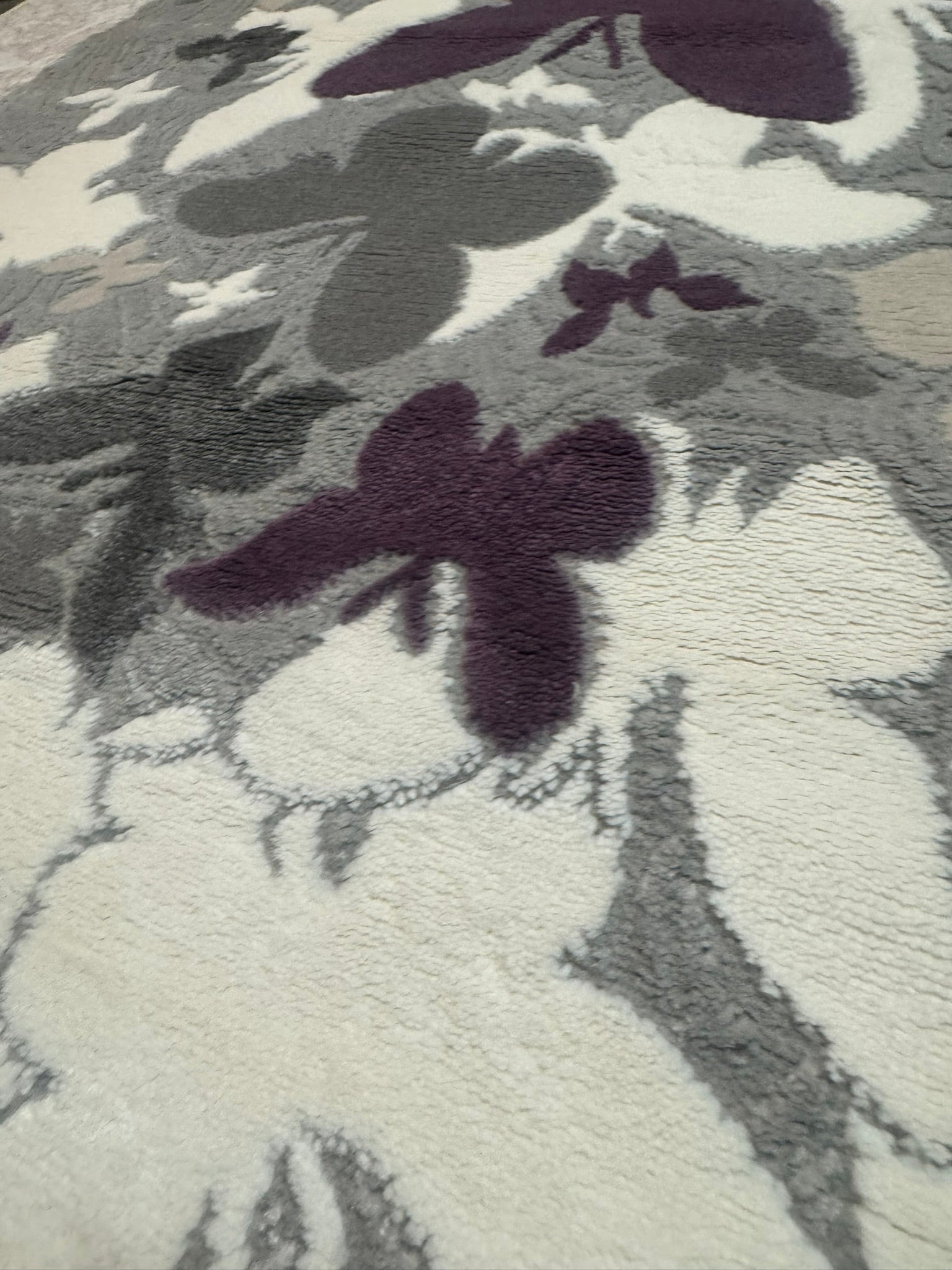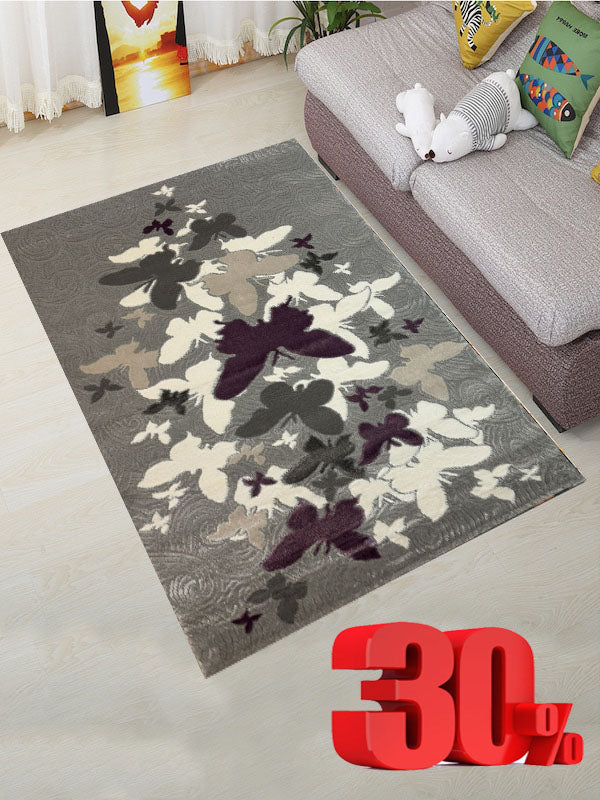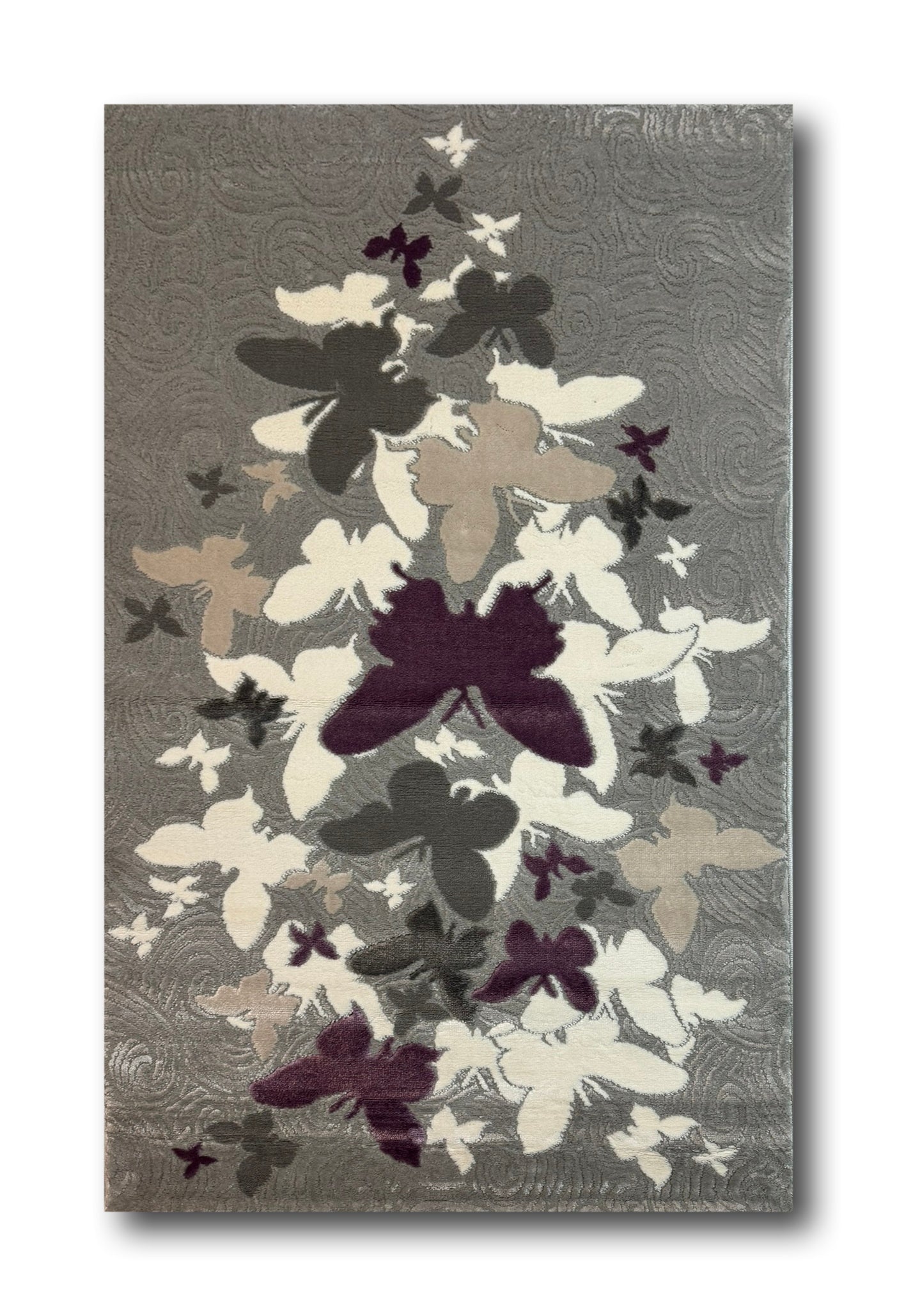 Covor Modern cu Fluturasi,Gri/Crem/Mov