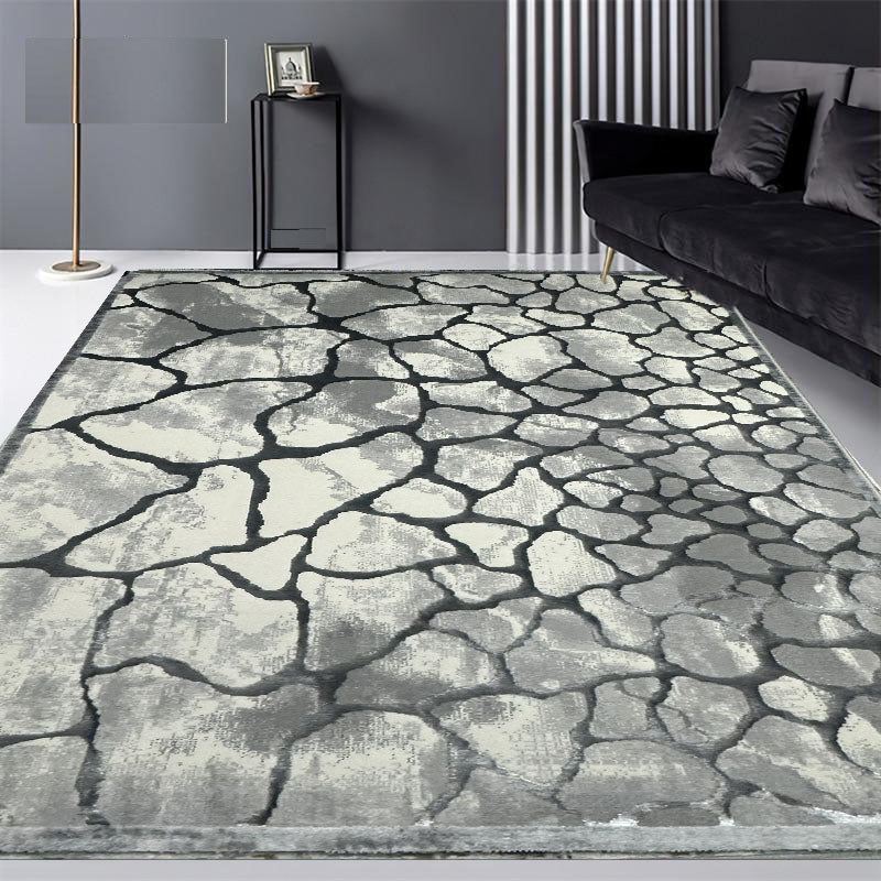Covor Modern cu Insertii tip Pietre 3D,Gri/Antracid,Alb