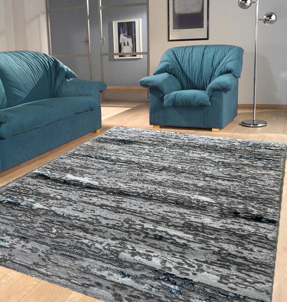 Covor Modern cu Insertii tip Picasso ,Albastru/Gri