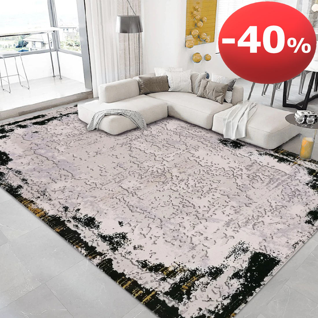 Covor Modern cu Insertii tip Picasso cu Chenar ,Negru/Gri