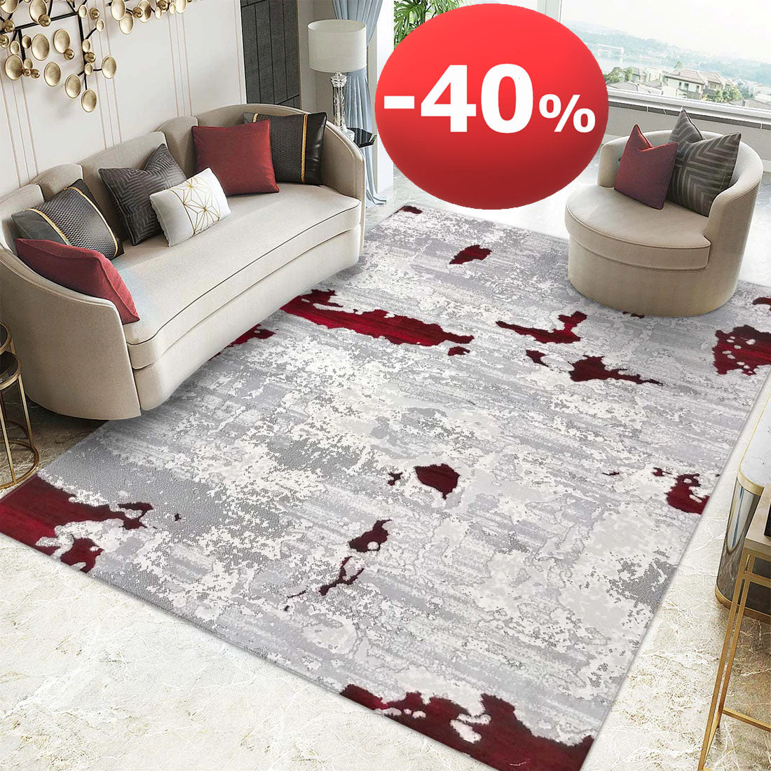 Covor Modern cu Insertii tip Picasso ,Rosu/Gri