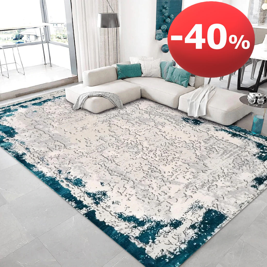 Covor Modern cu Insertii tip Picasso cu Chenar ,Turcoaz/Gri