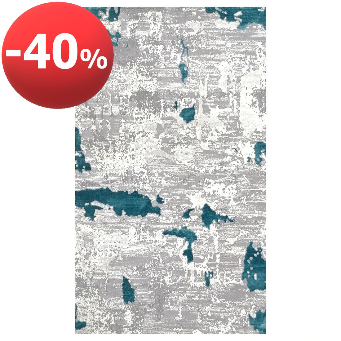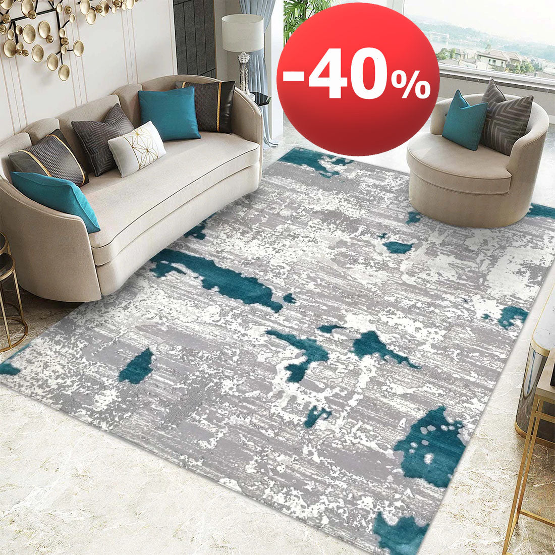 Covor Modern cu Insertii tip Picasso ,Turcoaz/Gri