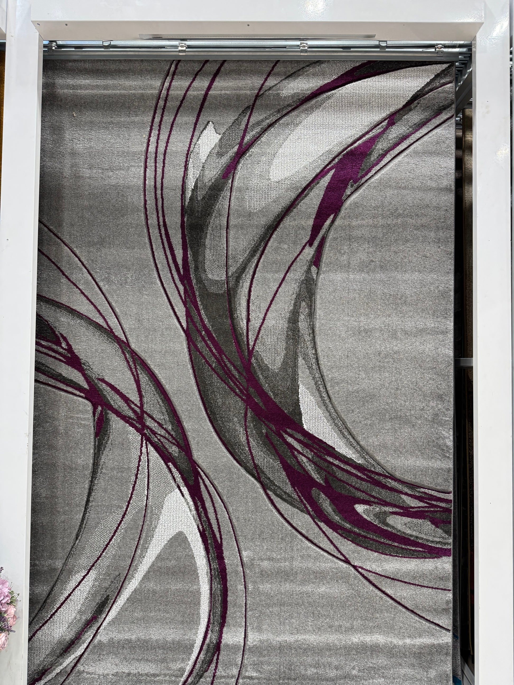 Covor Modern tip Lini, Gri/Negru/Mov