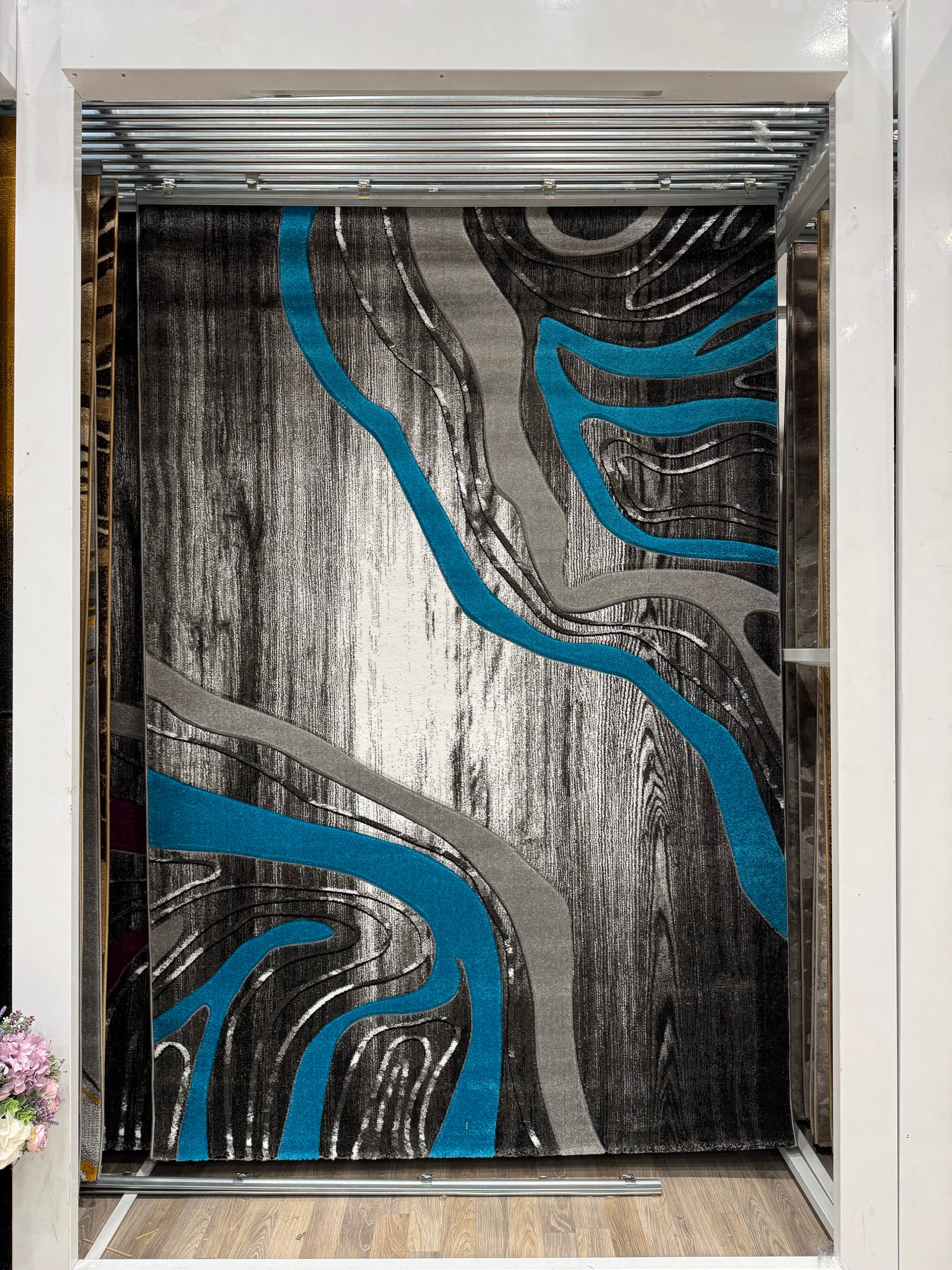 Covor Modern tip Valuri, Gri/Negru/Turqoise