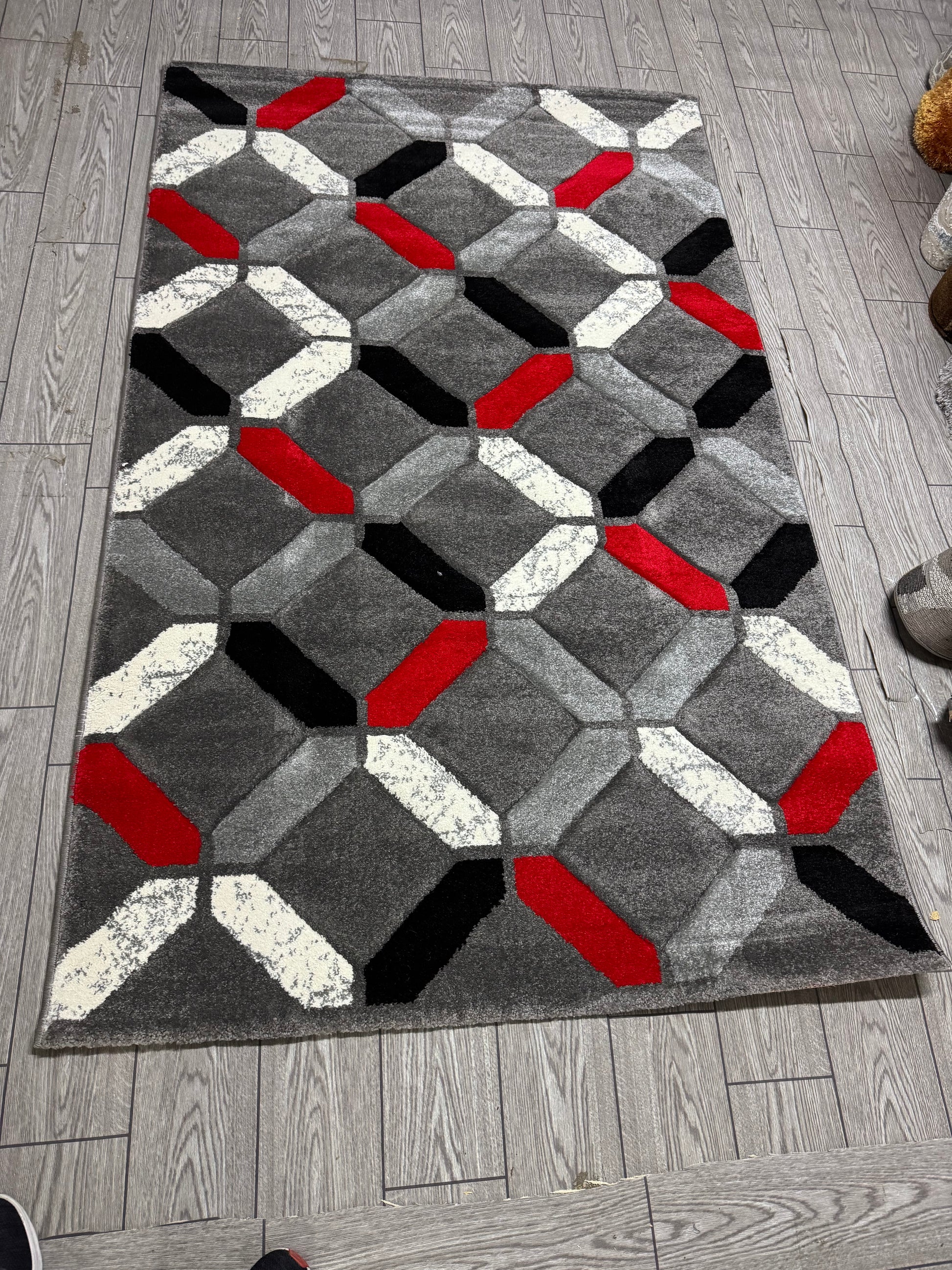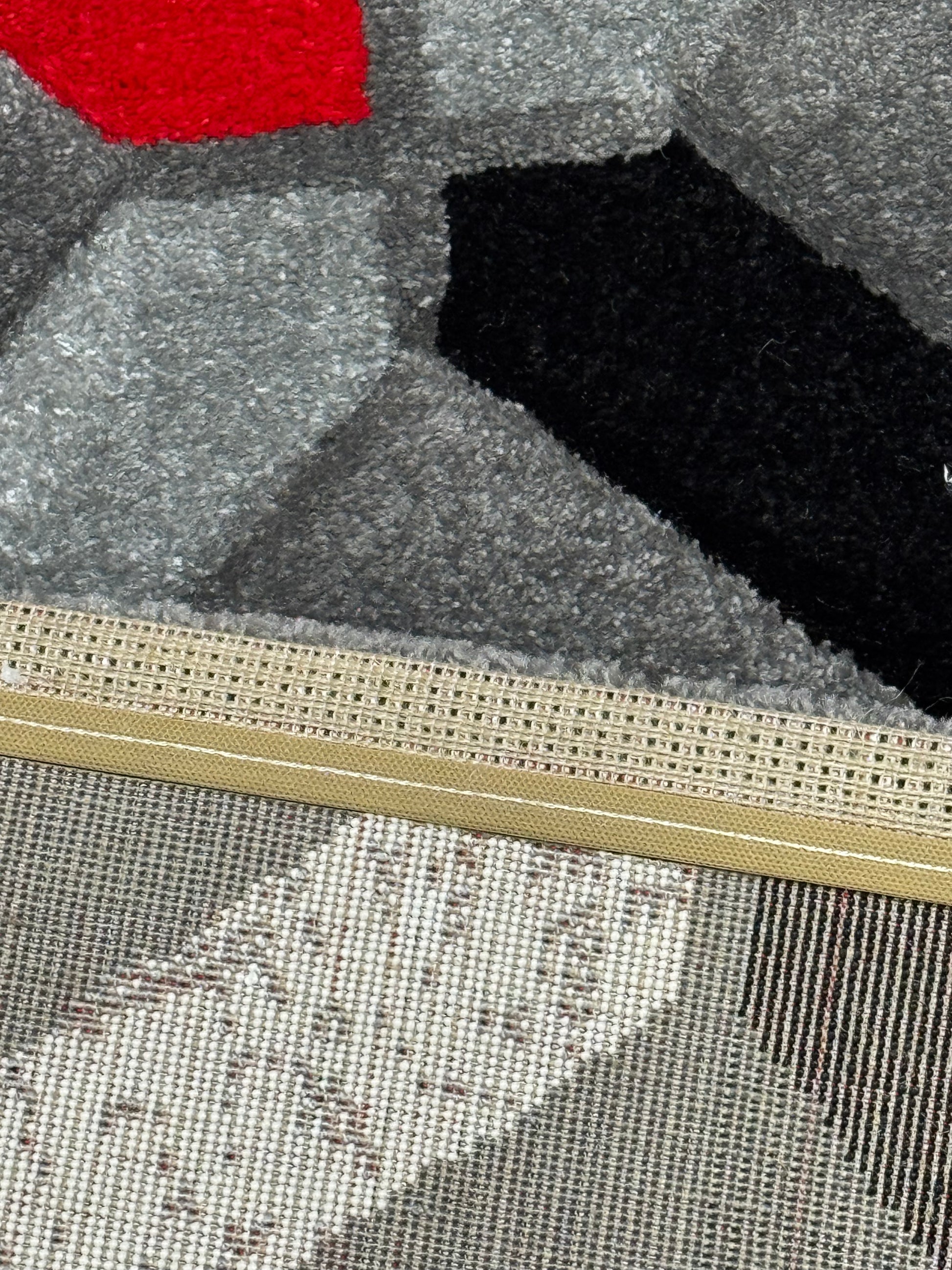 Covor Modern tip Romburi, Gri/Negru/Rosu